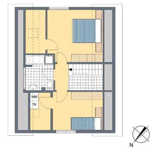 Im Dachgeschoss befinden sich das Badezimmer mit Fenster sowie zwei weitere Zimmer mit jeweils einen Abstellraum.