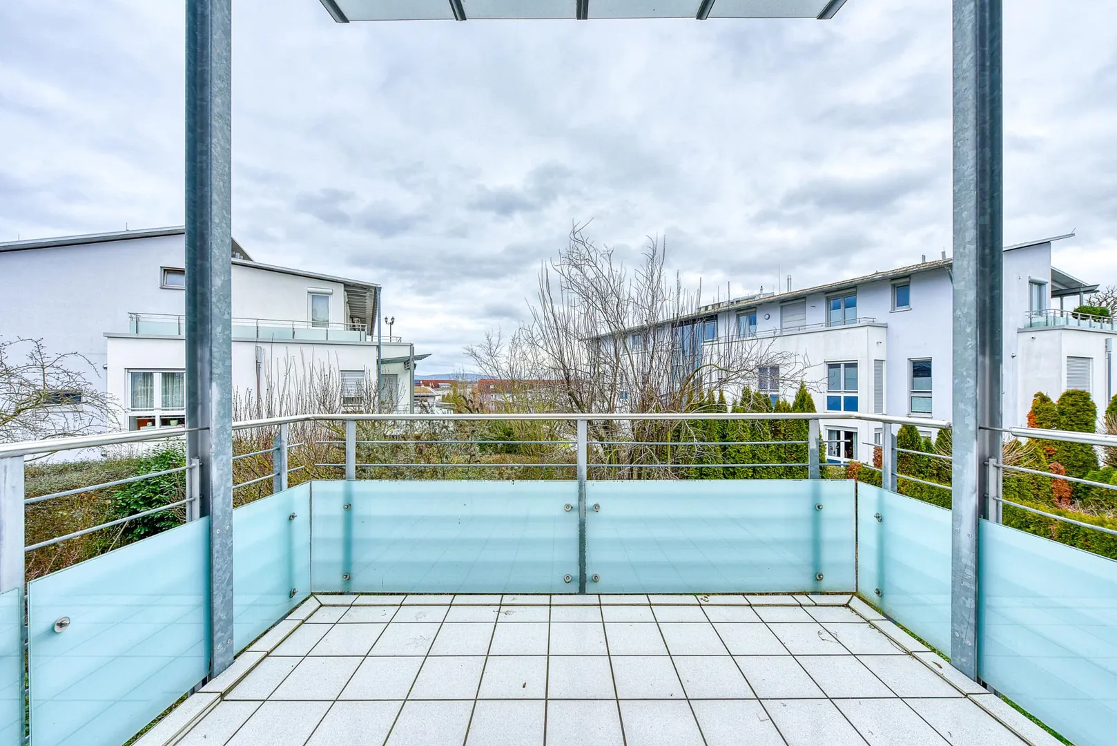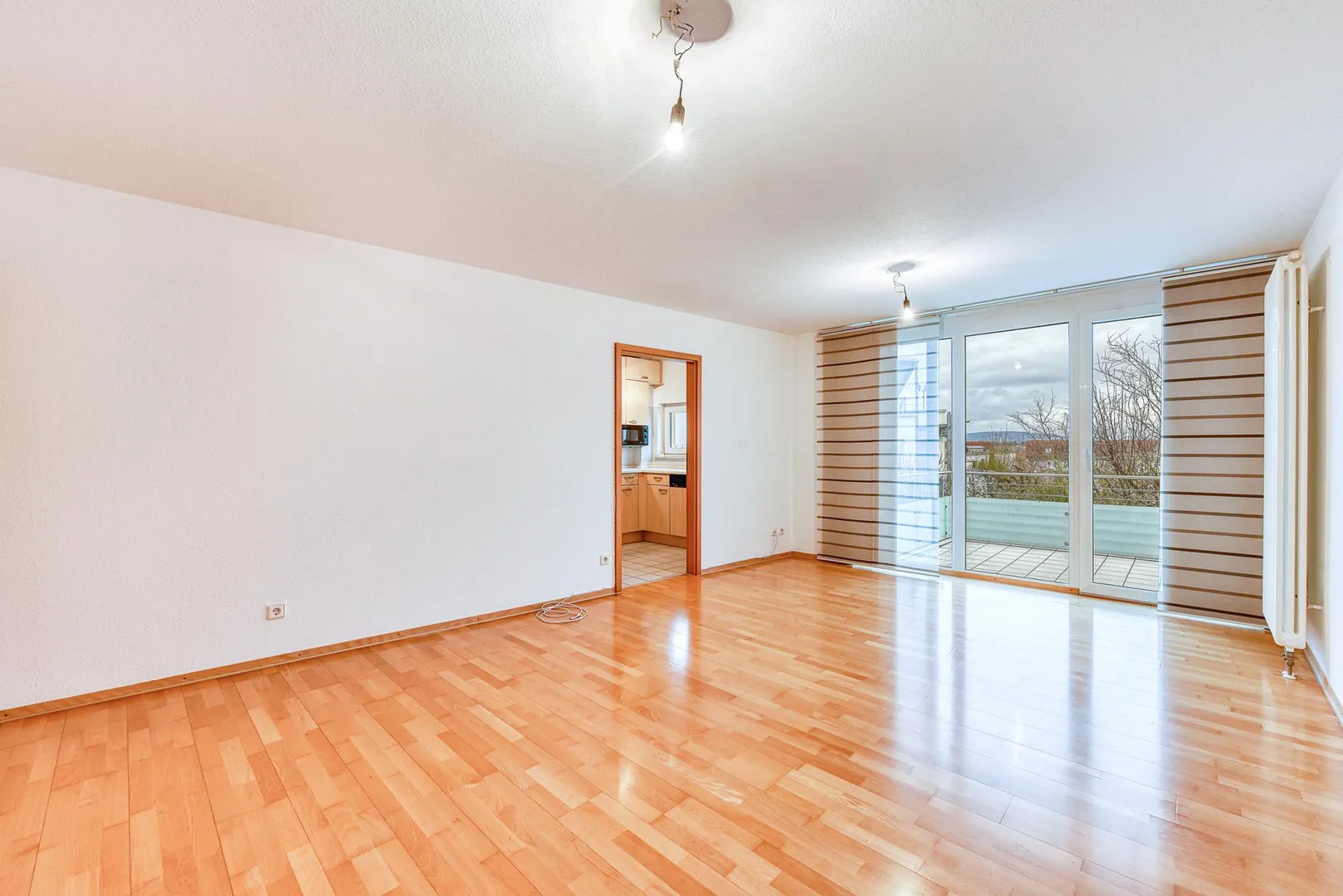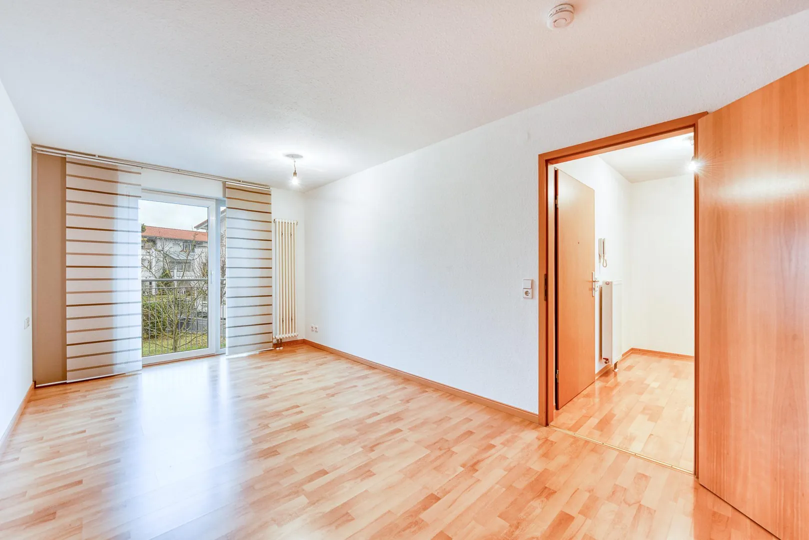 Die Wohnung verfügt über einen ca. 8 m² großen und überdachten Süd-Balkon, welcher über das Wohnzimmer begehbar ist.