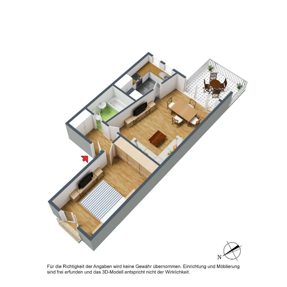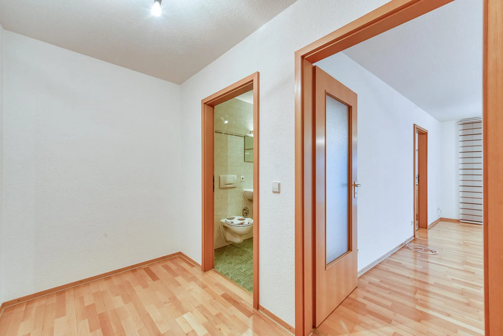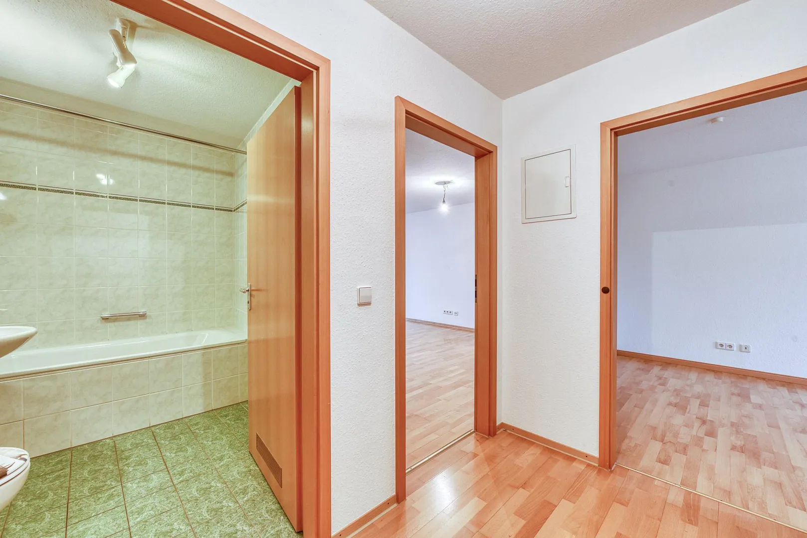 Die Wohnung verfügt über einen ca. 8 m² großen und überdachten Süd-Balkon, welcher über das Wohnzimmer begehbar ist.