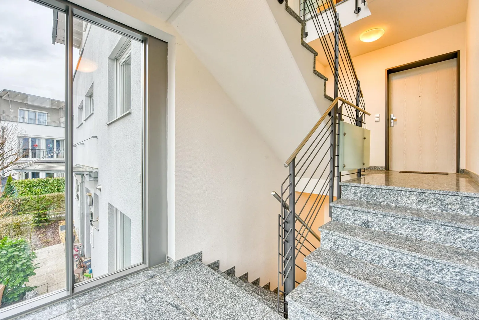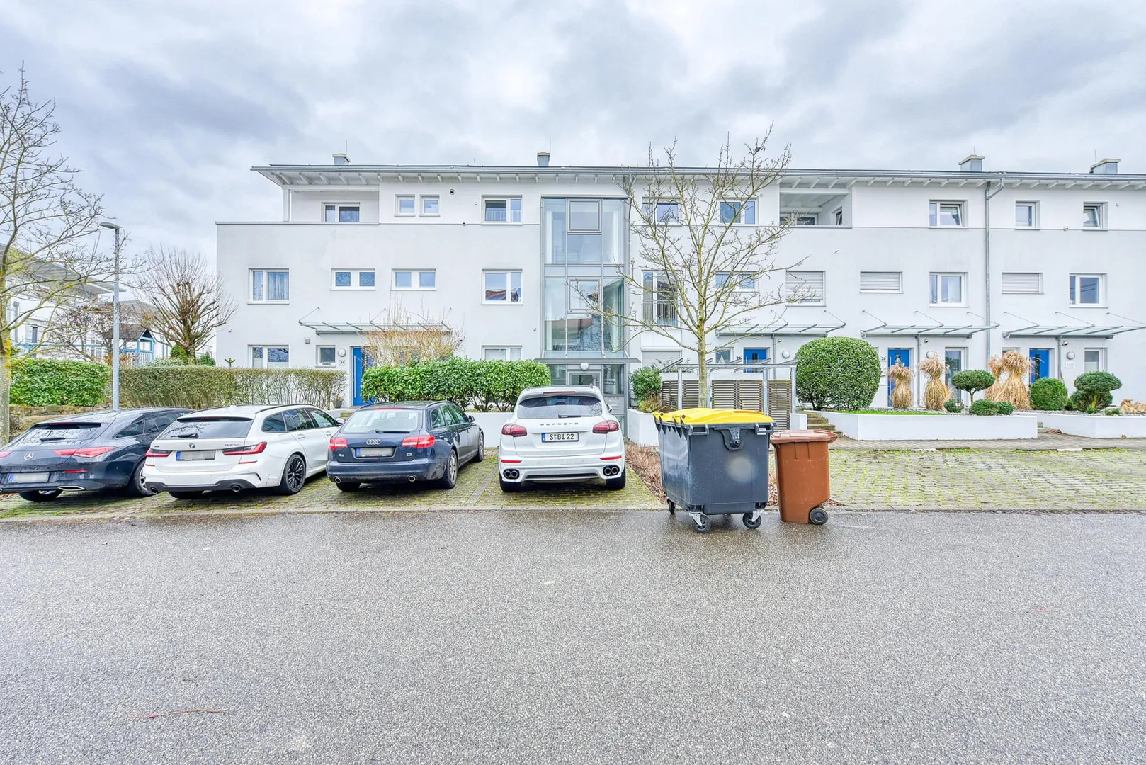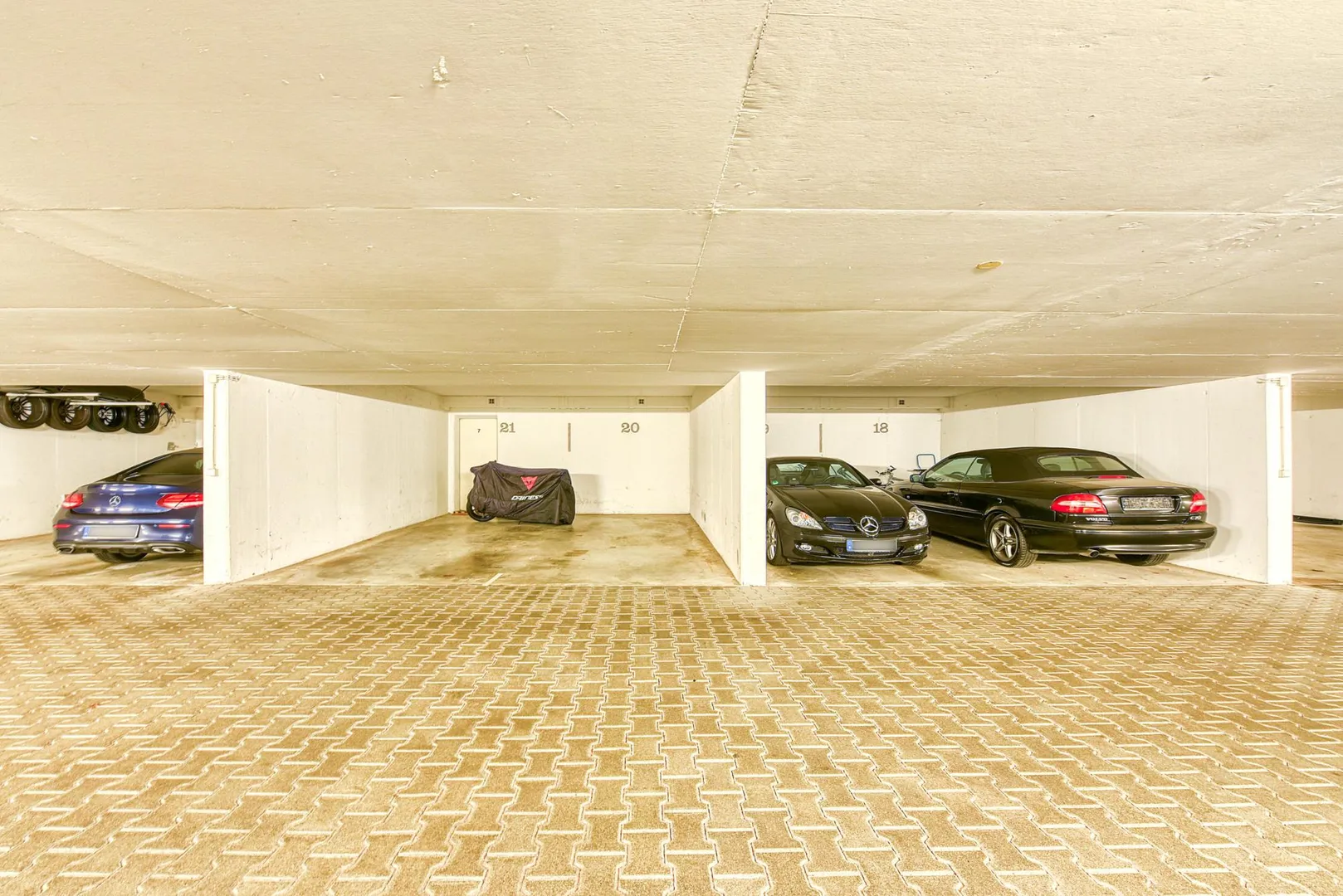 Zur Wohnung gehören ein ca. 6 m² großer Abstellraum im Untergeschoss, ein Kfz-Stellplatz in der Tiefgarage sowie ein Kfz-Außenstellplatz direkt vor dem Haus. Die monatliche Miete für den TG-Stellplatz beträgt 55 EUR und für den Außenstellplatz 30 EUR. Dies ist bereits in der Angabe der Kaltmiete enthalten.