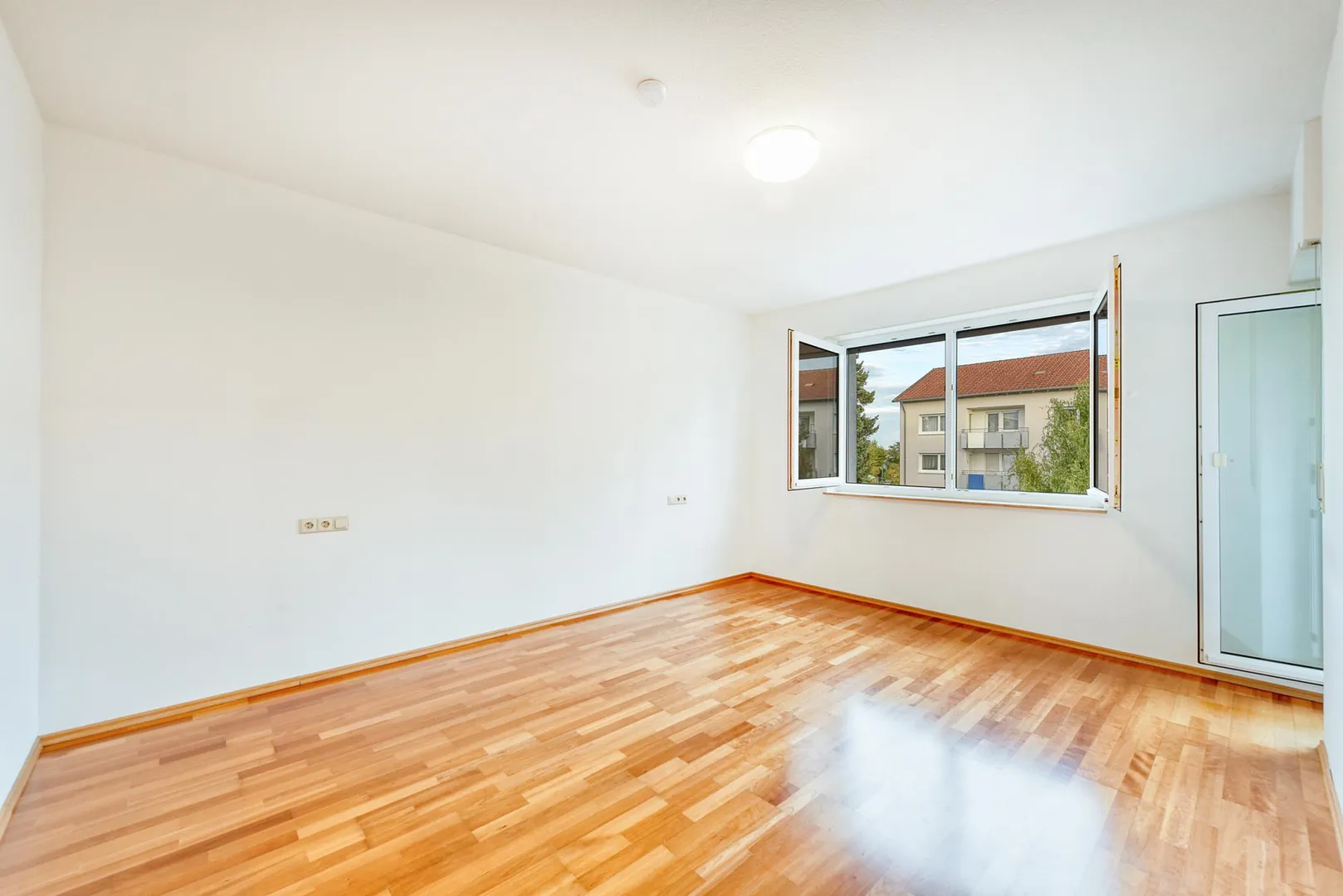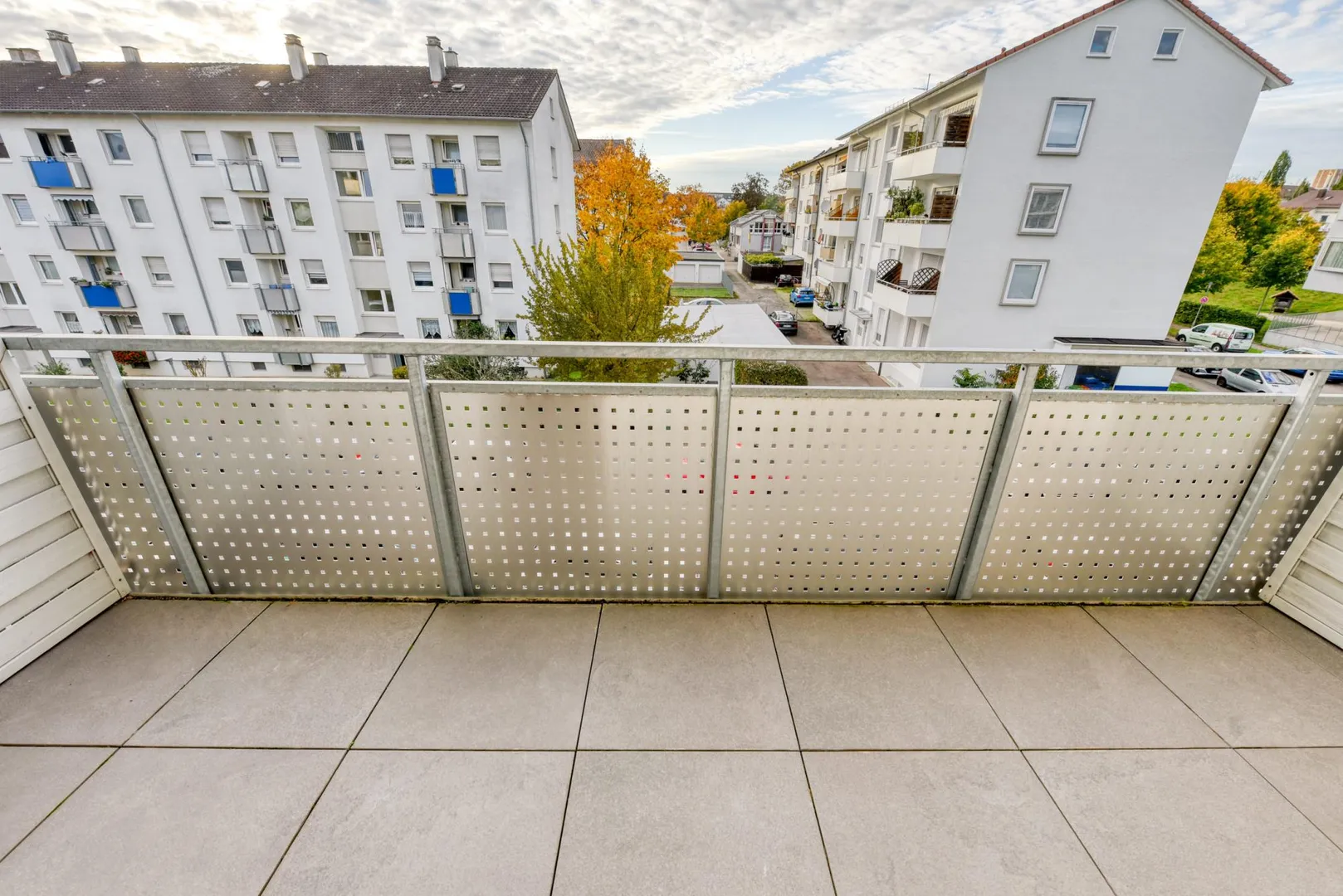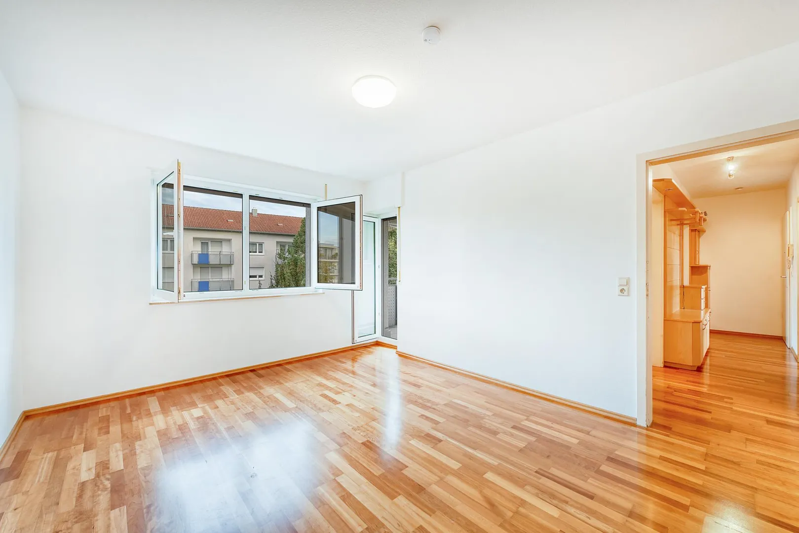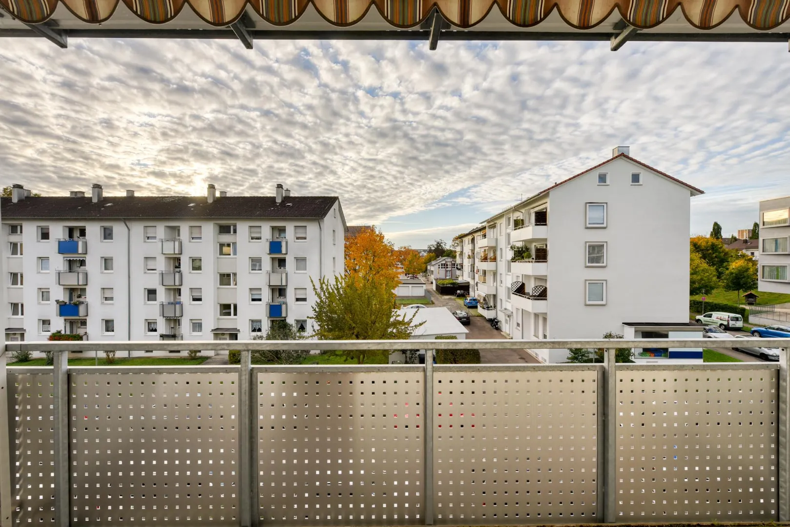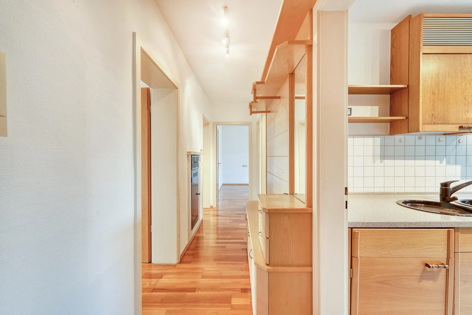 Der Grundriss ist sehr gut: alle Räume sind direkt vom Flur begehbar. Die Wohnung verfügt über zwei Balkone: ein ca. 6,4 m² großer und überdachter West-Balkon, welcher über das Wohnzimmer begehbar ist sowie ein ca. 3 m² großer und teilüberdachter Ost-Balkon welcher sowohl über das Schlafzimmer, als auch über die Küche begehbar ist. Beide Balkone sind mit elektrischen Markisen ausgestattet und wurden 2020 modernisiert. Das Badezimmer verfügt über ein Fenster. Das WC mit Fenster ist separat.
