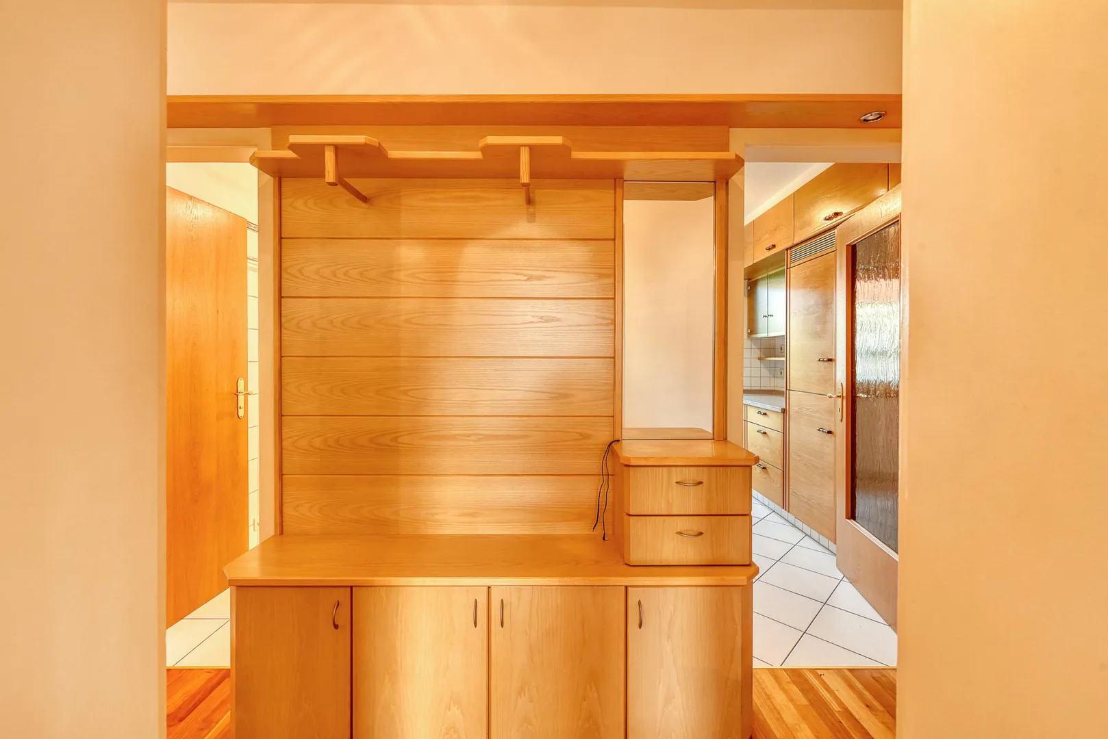 Der Flur ist ausgestattet mit einer maßgeschneiderten Garderobe.