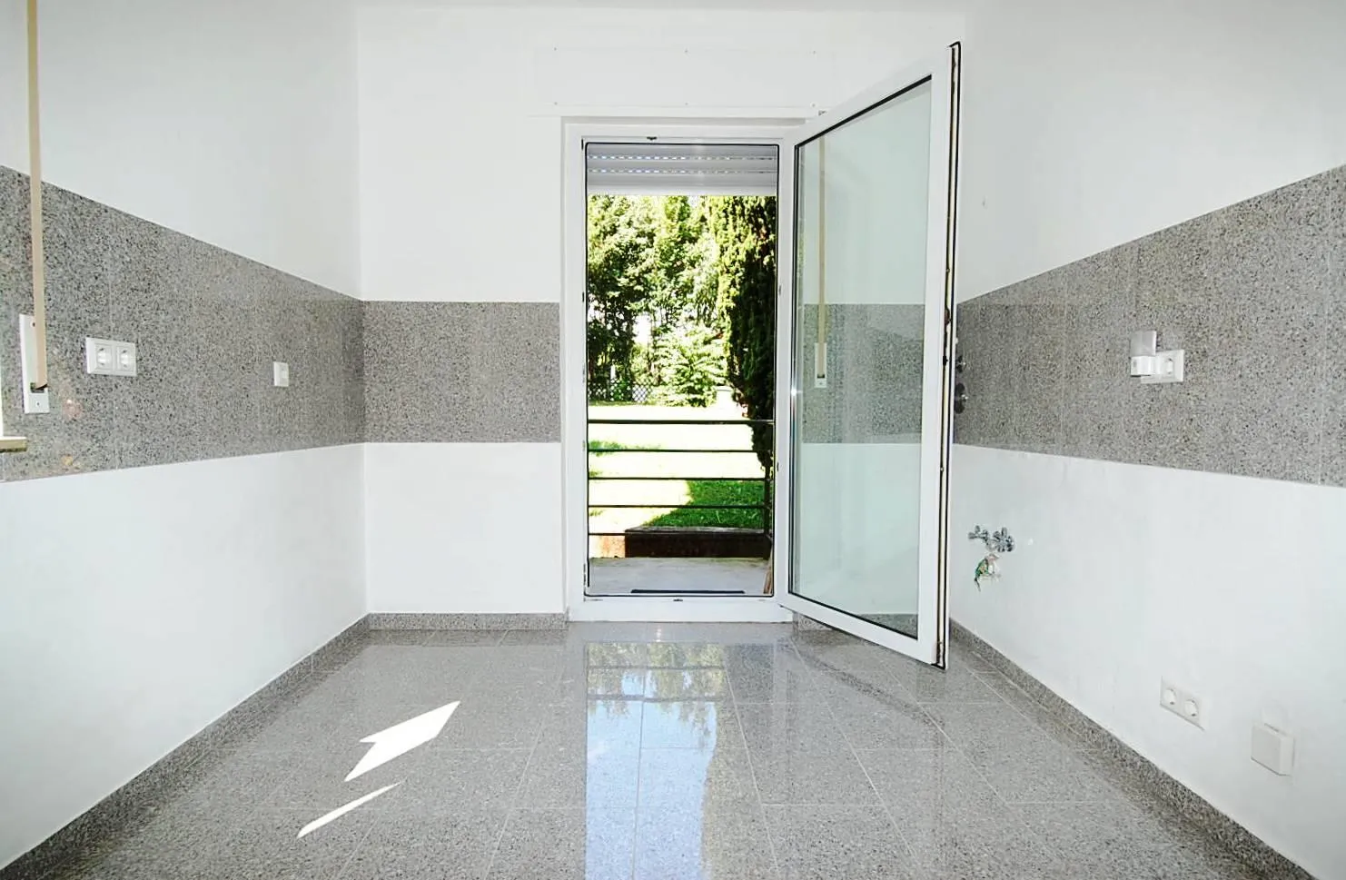 Der gemeinschaftliche Garten ist über die Küche zugänglich.