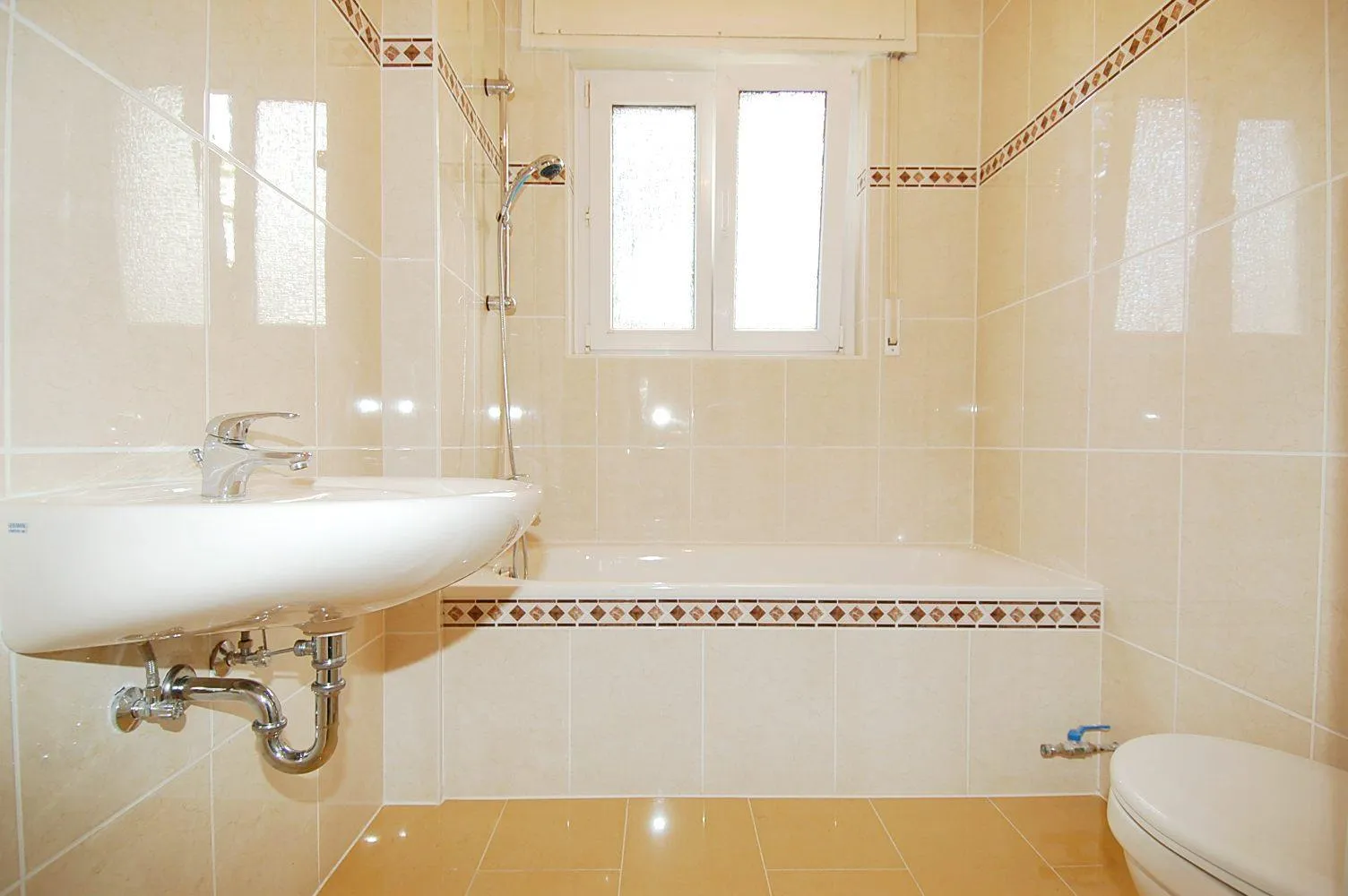 Das schicke Tageslicht-Badezimmer ist ausgestattet mit einer Badewanne und einem WC.