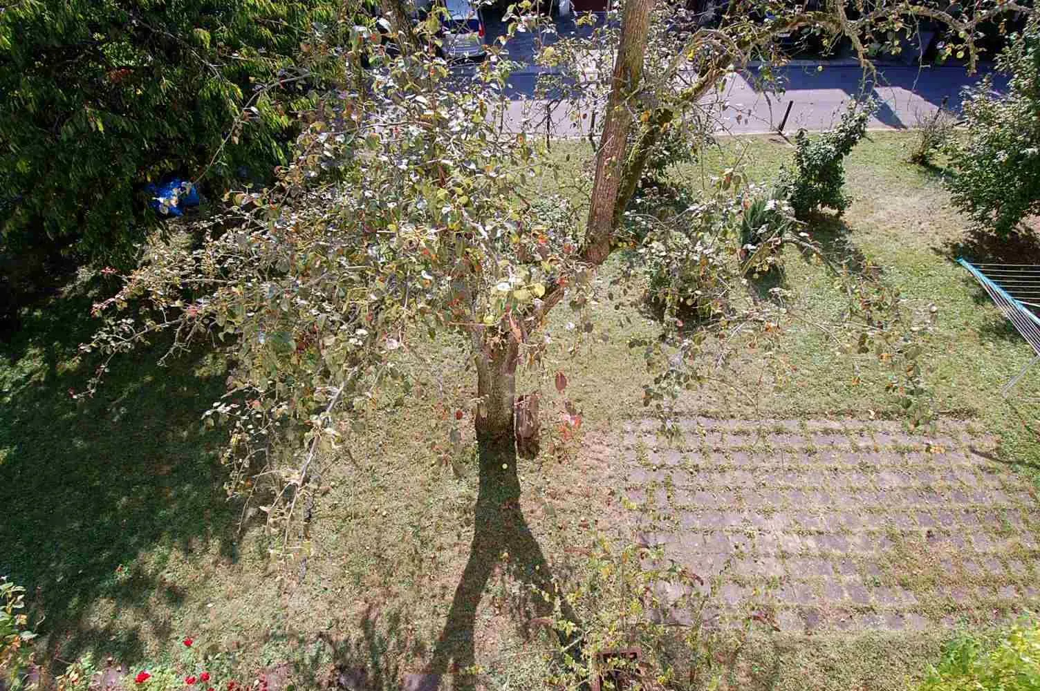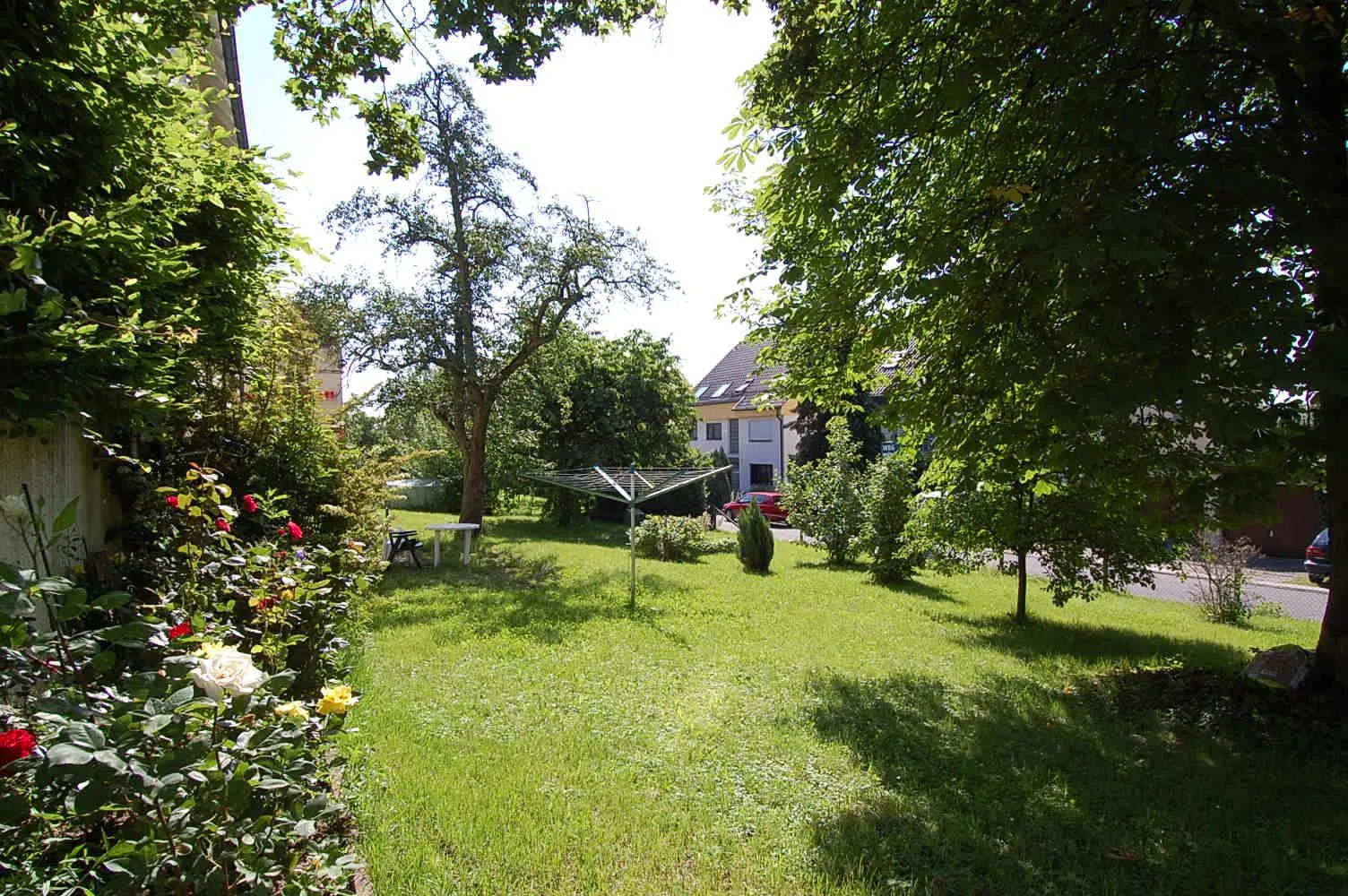 Das Haus befindet sich auf einem großen Eck-Grundstück mit einem großen Gemeinschaftsgarten in leichter Hanglage.