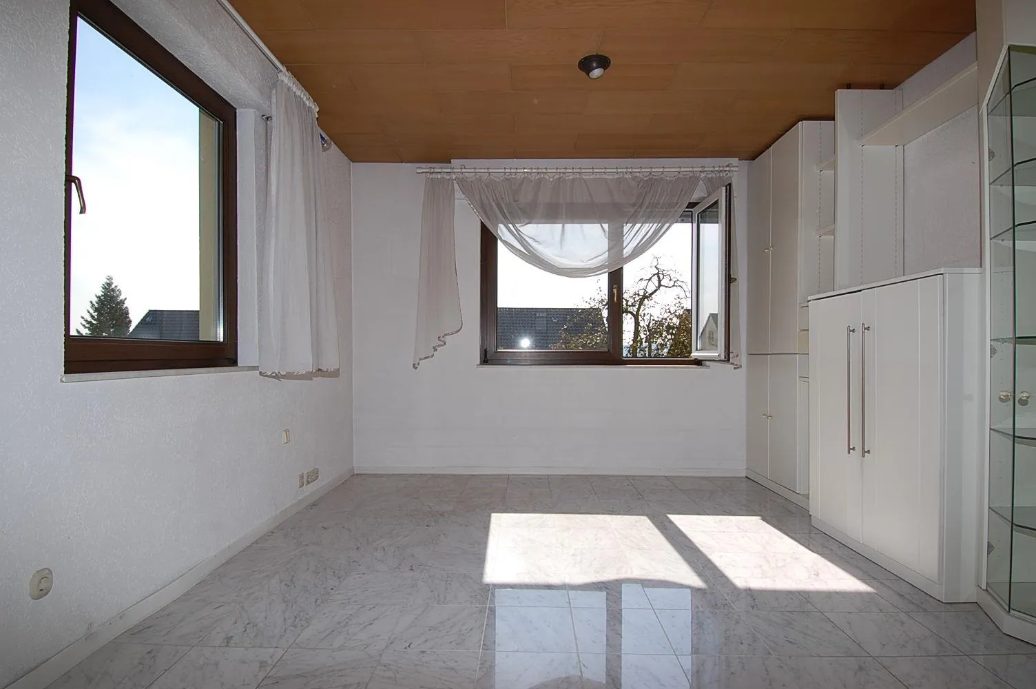 Das Haus wurde auf einem großen Eckgrundstück in leichter Hanglange erstellt. Es wurde ca. 1952, massiv, komplett unterkellert, 2-geschossig und mit Bühne gebaut.