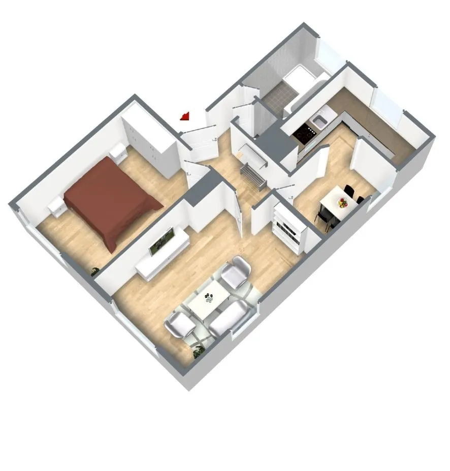Diese schicke 2 1/2 Zimmer-Wohnung befindet sich im 1.Obergeschoss eines freistehenden 6-Familienhauses.