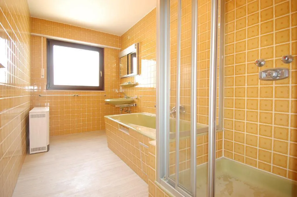 Das Tageslicht-Badezimmer ist raumhoch gefliest und verfügt neben einer Badewanne auch über eine Dusche. Zusätzlich gibt es einen Waschmaschinenanschluss.
