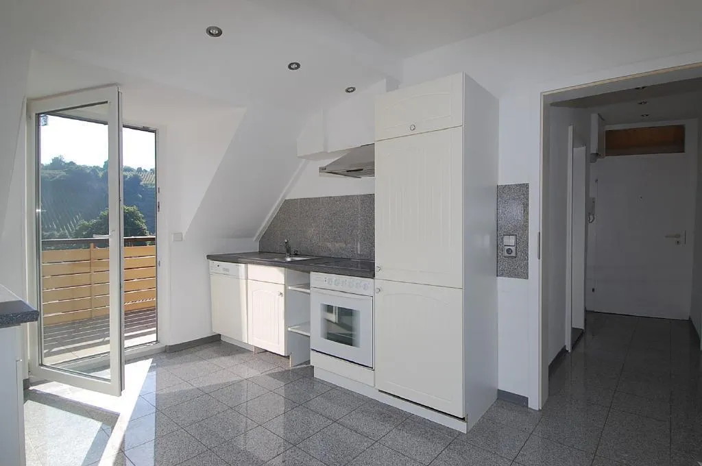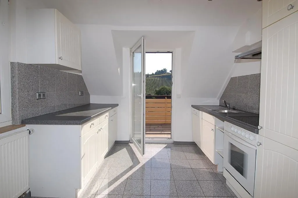 Die Wohnung verfügt über eine 12m² große Ost-Terrasse mit einer unverbaubaren Aussicht über die Weinberge.