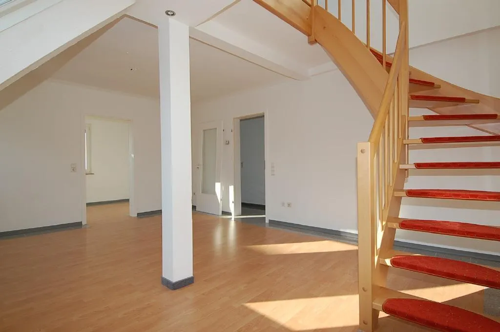 Diese individuelle, schicke, neu- und hochwertige 2 Zimmer-Dachgeschoss-Maisonette-Wohnung mit Studio befindet sich im 2.OG eines freistehenden 3-Familienhauses.