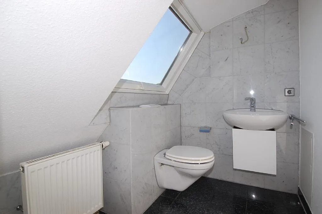 Auf dem Studio befindet sich ein zusätzliches, zweites, separates WC mit Fenster. Das Studio ist komplett mit Dachschrägen, sodass dort keine Schränke, sondern lediglich das Schlafzimmerbett aufgestellt werden kann.