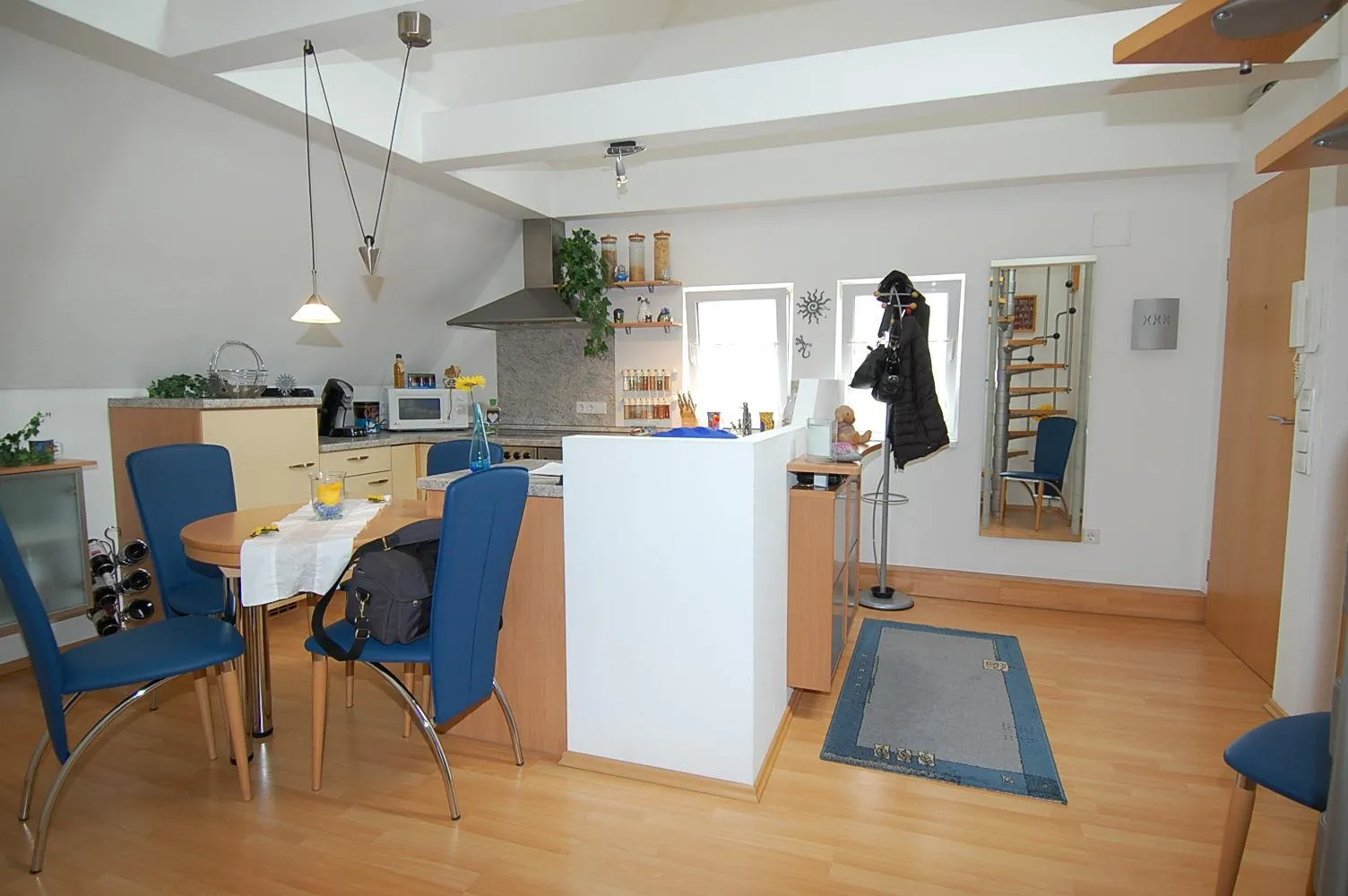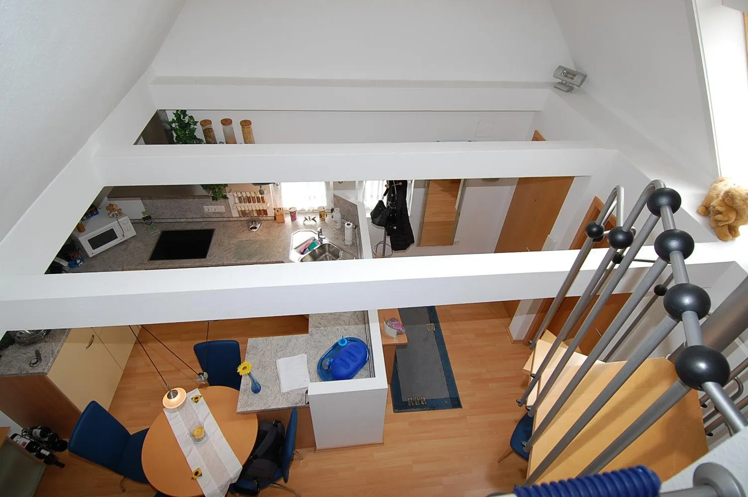 Der Grundriss ist sehr gut. Alle Räume sind vom Flur aus erreichbar. Über eine Wendeltreppe kommen Sie auf die Galerie.