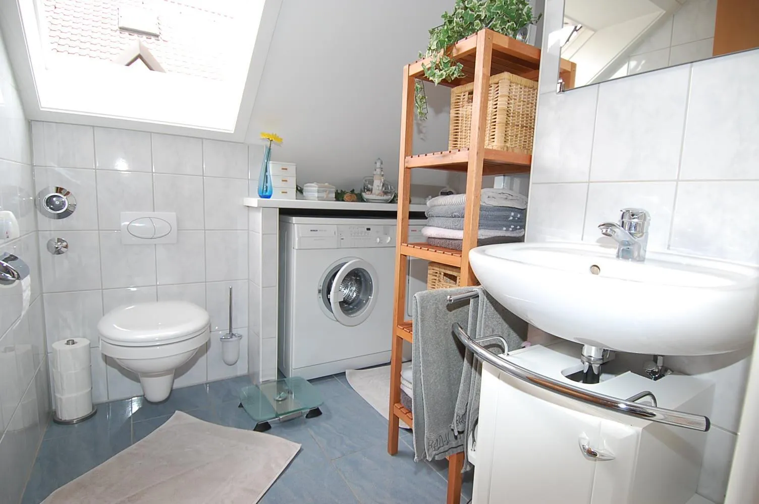 Gemeinschaftlich gibt es eine Waschküche im Untergeschoss. Im Badezimmer gibt es aber auch eine Abstellmöglichkeit für die Waschmaschine.