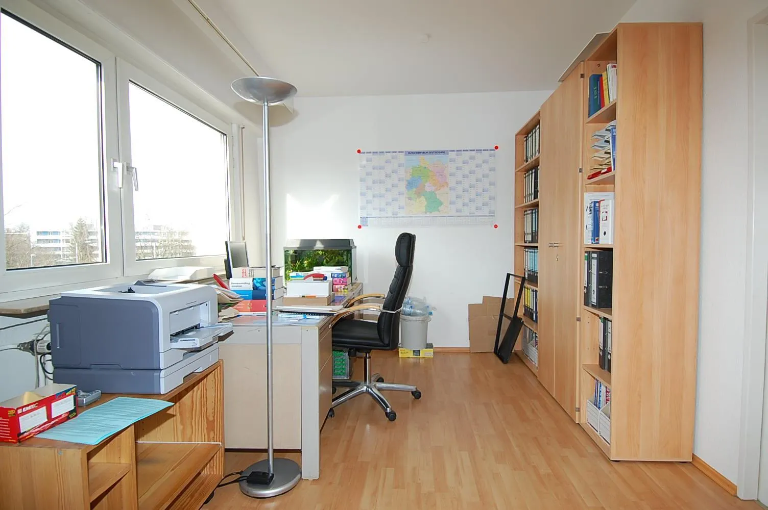 Die Büroetage befindet sich im kleinen Einkaufszentrum in Stuttgart-Freiberg.