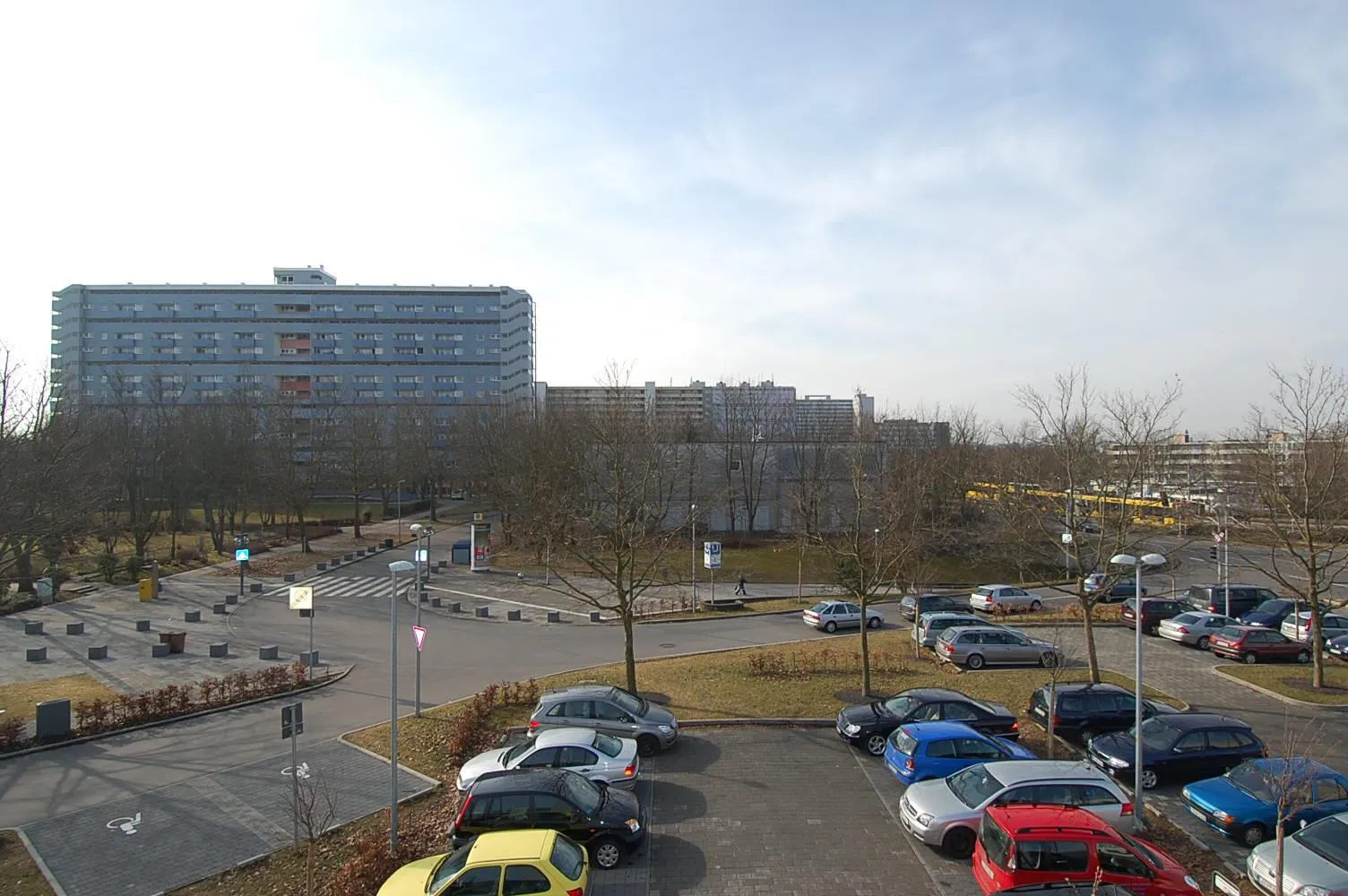 Ladengeschäfte grenzen direkt an das Gebäude.