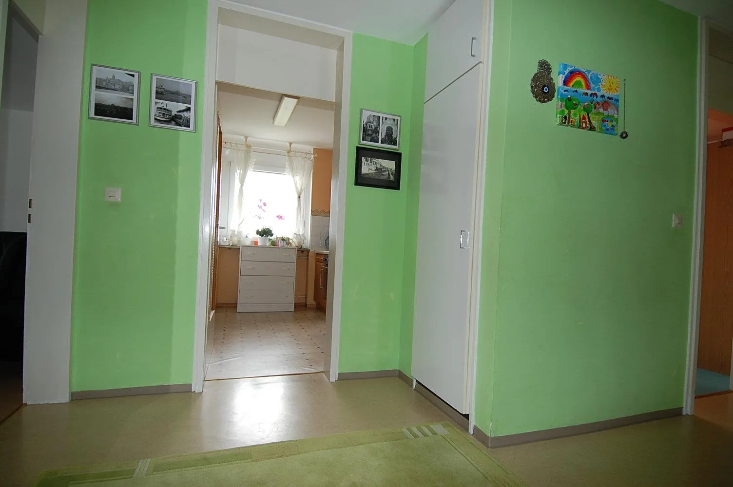 Sie ist ausgestattet mit einem Balkon mit Fenster und einem Tageslichtbad mit Fenster und Badewanne. Das WC ist separat. Der Grundriss ist gut. Jedes Zimmer ist vom Flur aus erreichbar.