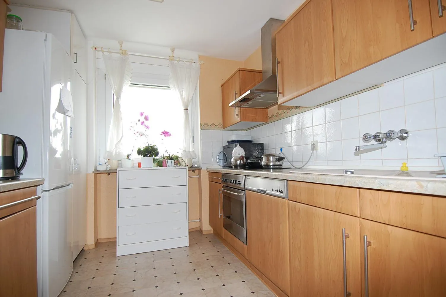 Das Badezimmer und der Fließenspiegel in der Küche werden neu gefliest.