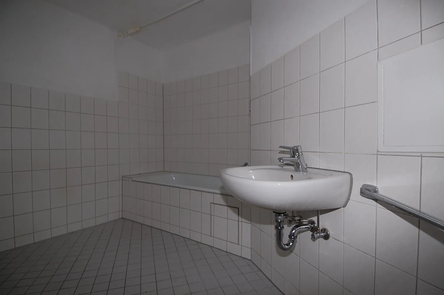 Der Grundriss ist gut. Jedes Zimmer ist vom Flur aus erreichbar. Das innenliegende Badezimmer und die Küche sind weiß gefliest. In allen Wohnraumen und im separaten WC befinden sich PVC Bodenbeläge. Das Badezimmer ist mit einer Badewanne mit Duschmöglichkeit und einem Waschmaschinenanschluß ausgestattet.