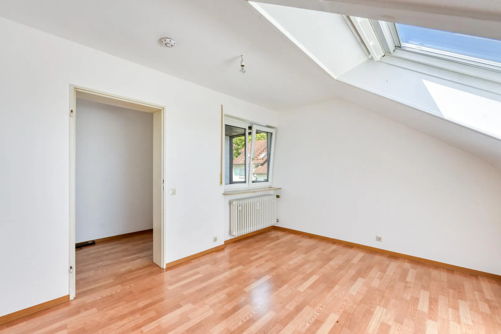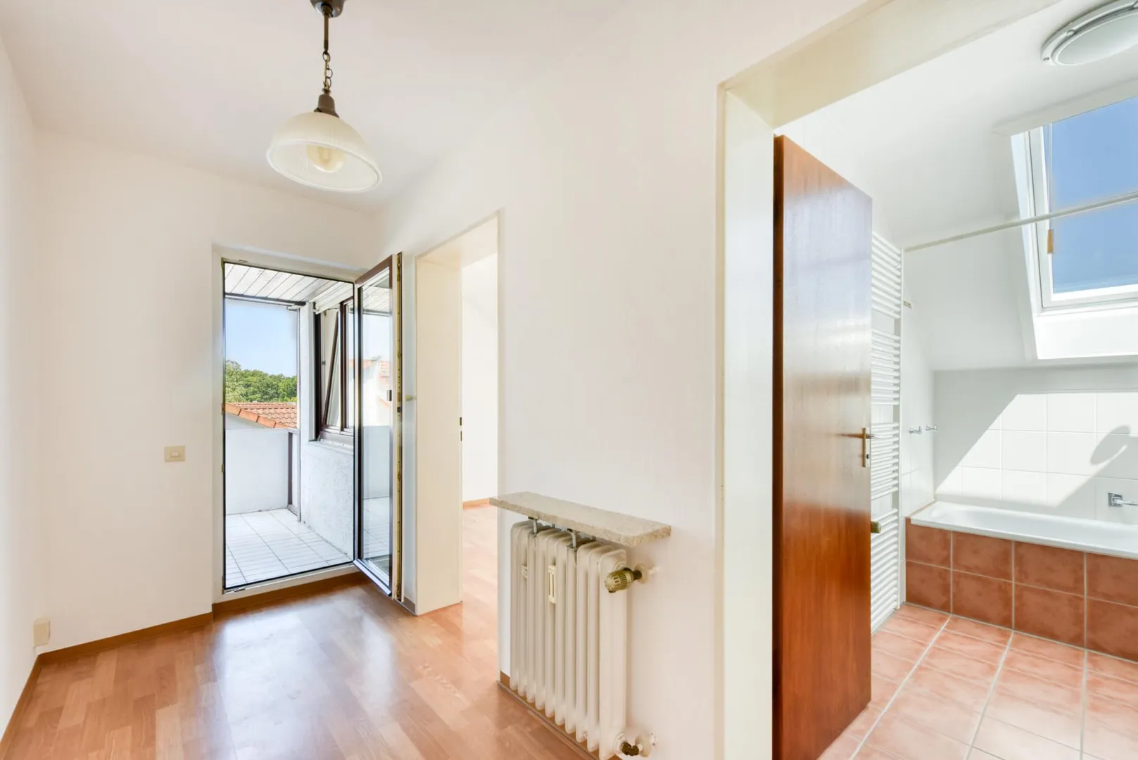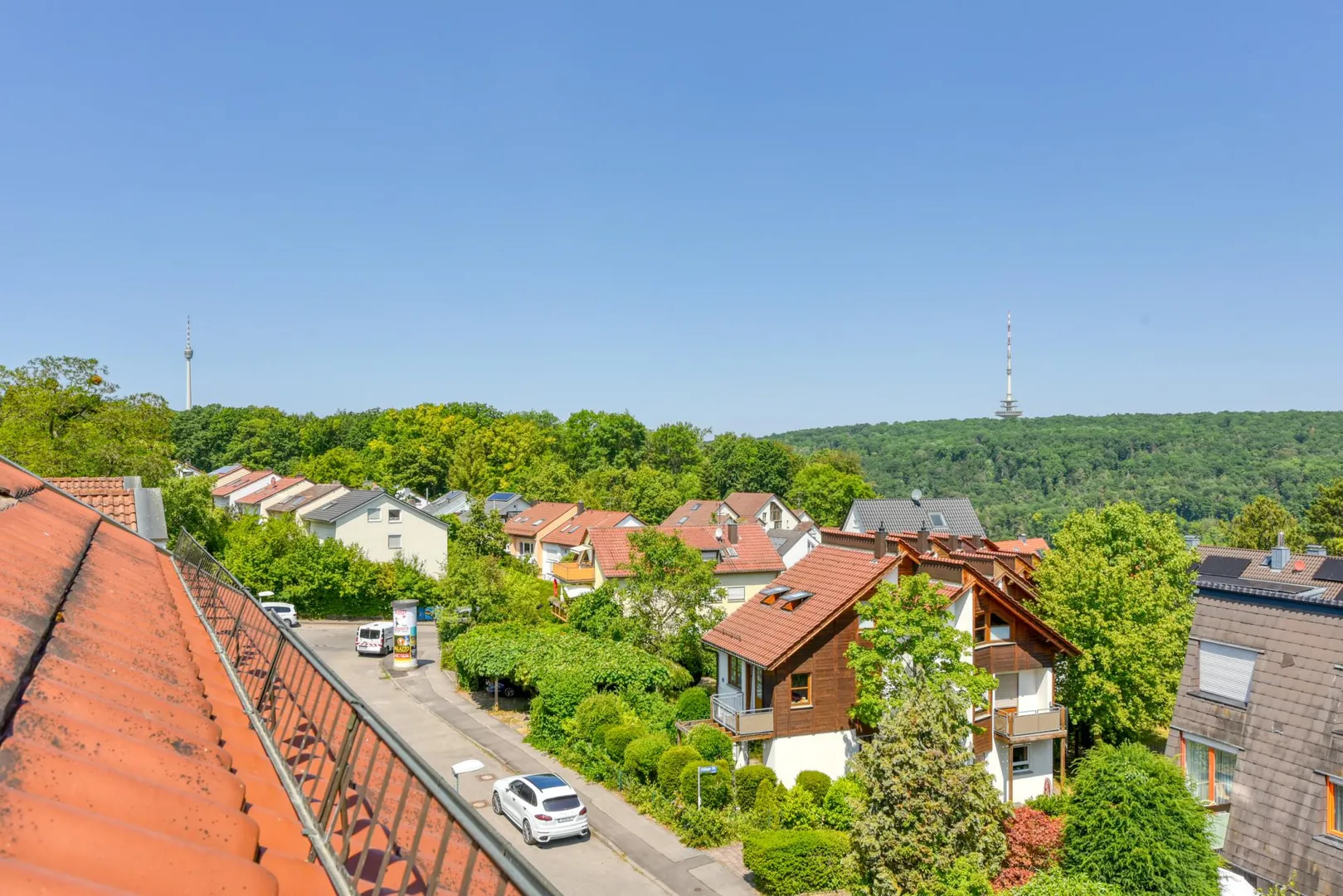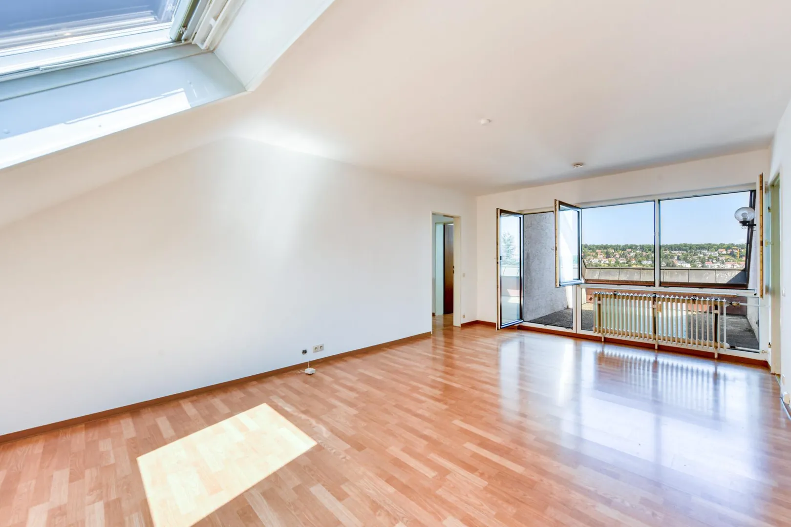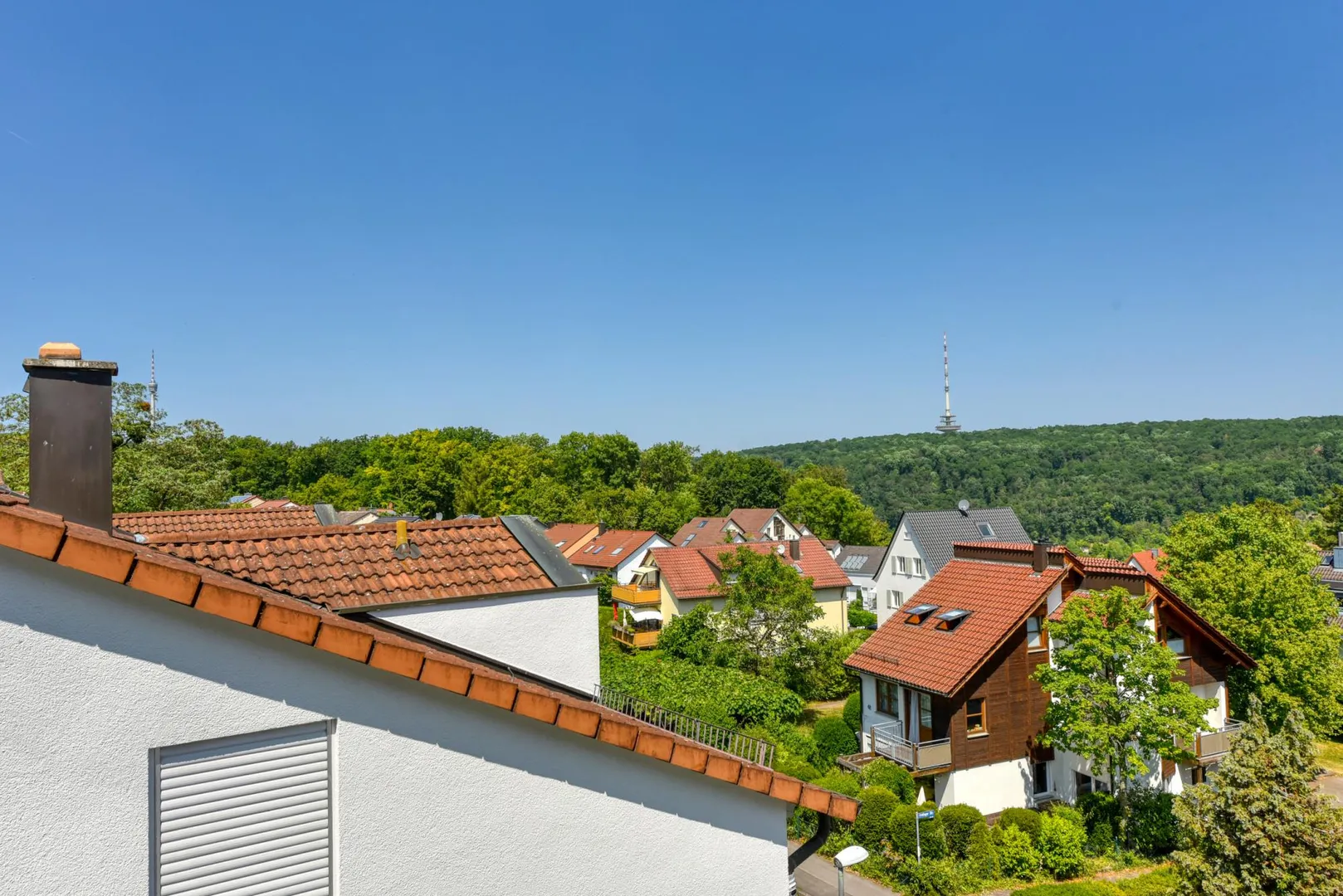 Diese renovierte 3-Zimmer-Dachgeschoss-Wohnung mit zwei Balkonen und traumhaften Fernblick befindet sich im 2. Obergeschoss.