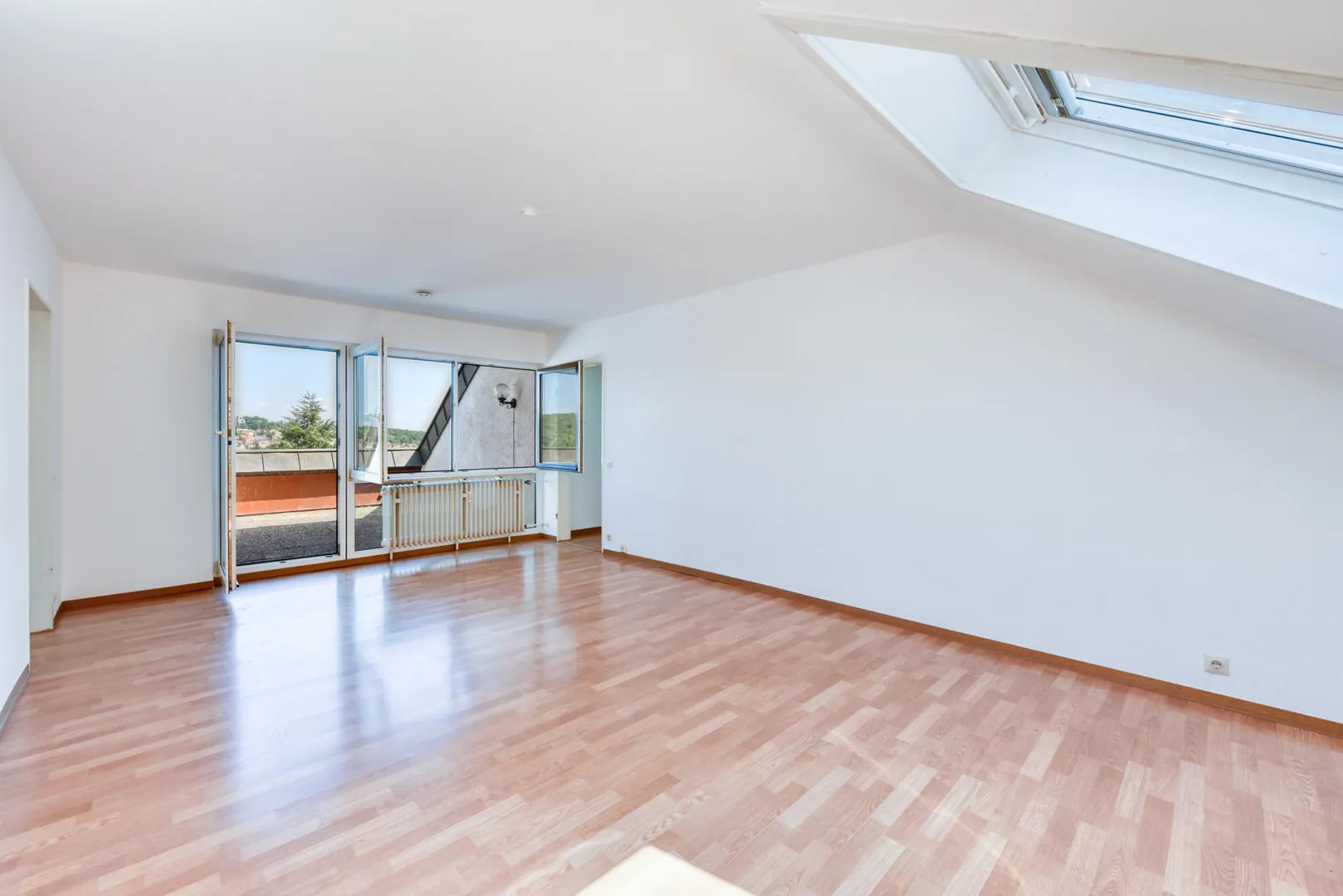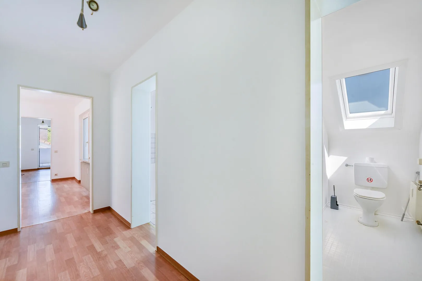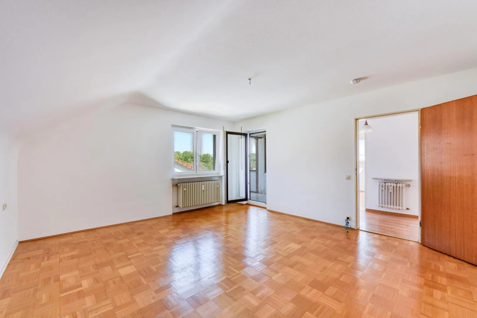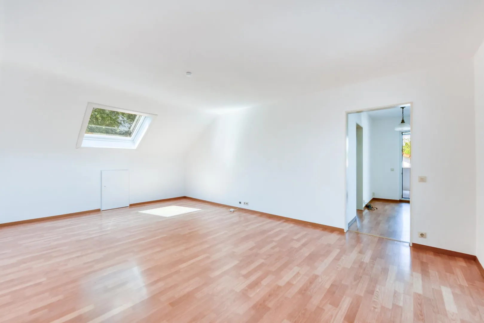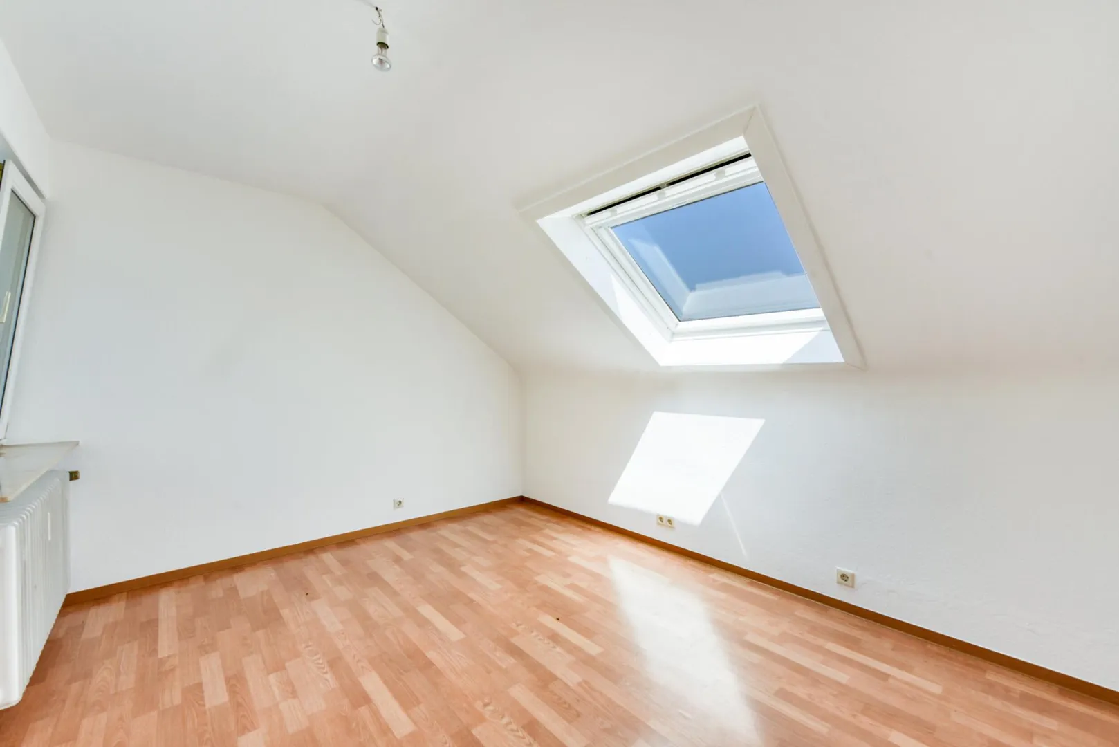Diese renovierte 3-Zimmer-Dachgeschoss-Wohnung mit zwei Balkonen und traumhaften Fernblick befindet sich im 2. Obergeschoss.