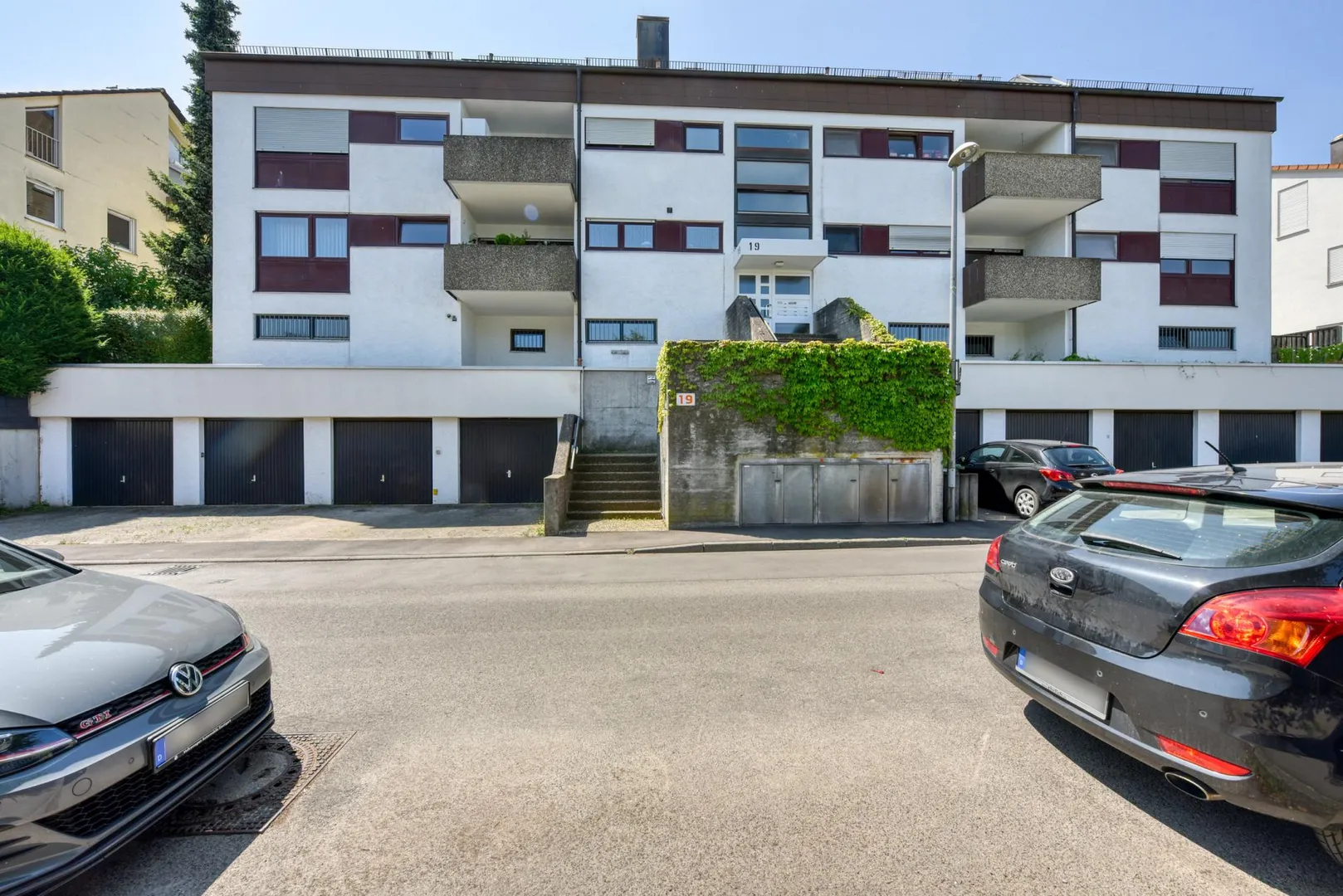 Diese renovierte 3-Zimmer-Dachgeschoss-Wohnung mit zwei Balkonen und traumhaften Fernblick befindet sich im 2. Obergeschoss eines gepflegten 9-Familienhauses.