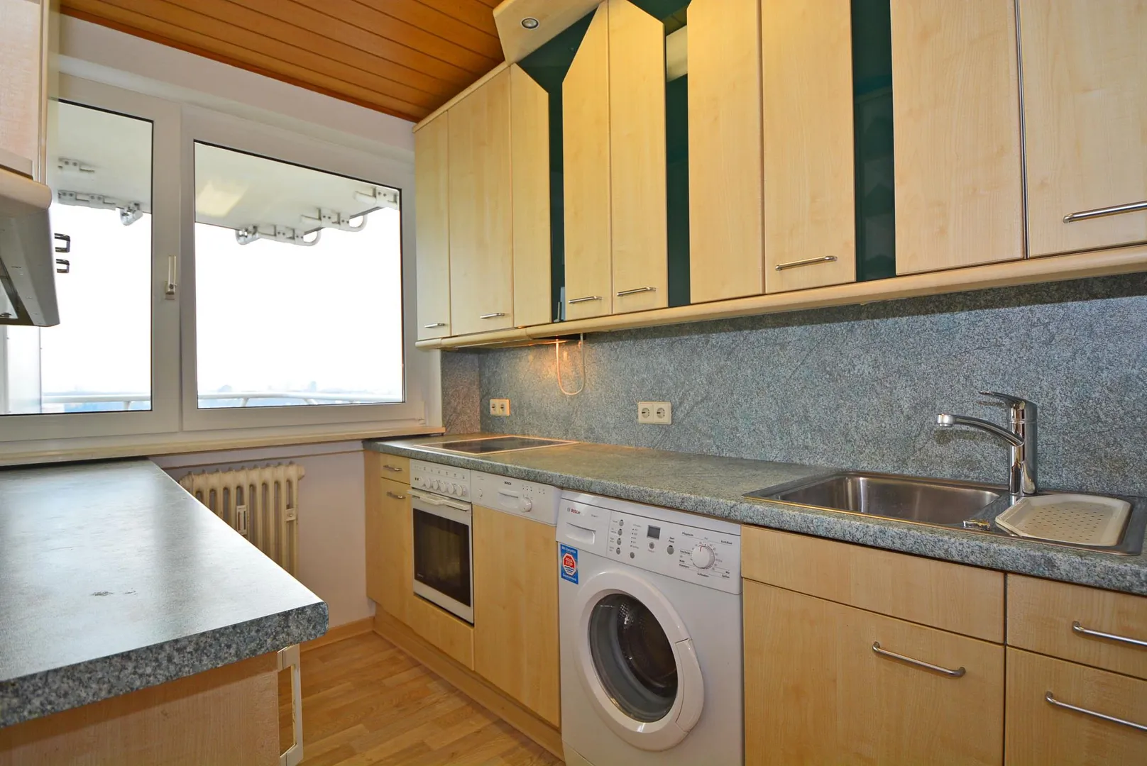 Die Küche ist mit einer älteren Einbauküche und einer neuwertigen BOSCH Waschmaschine ausgestattet.