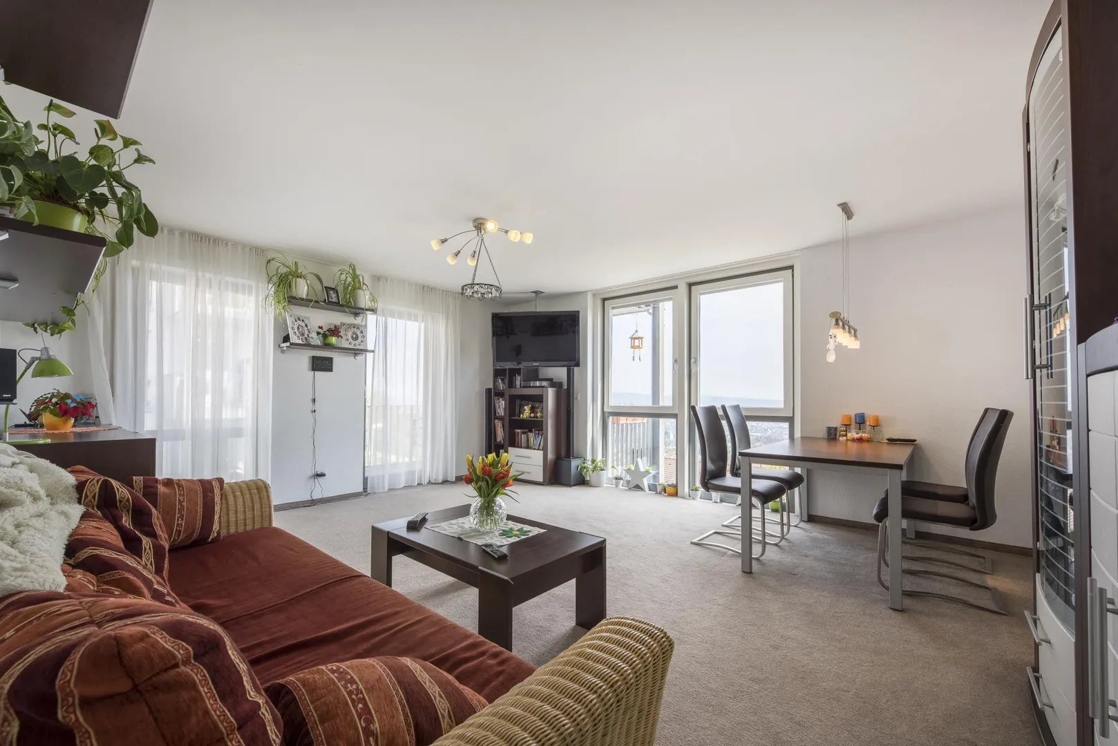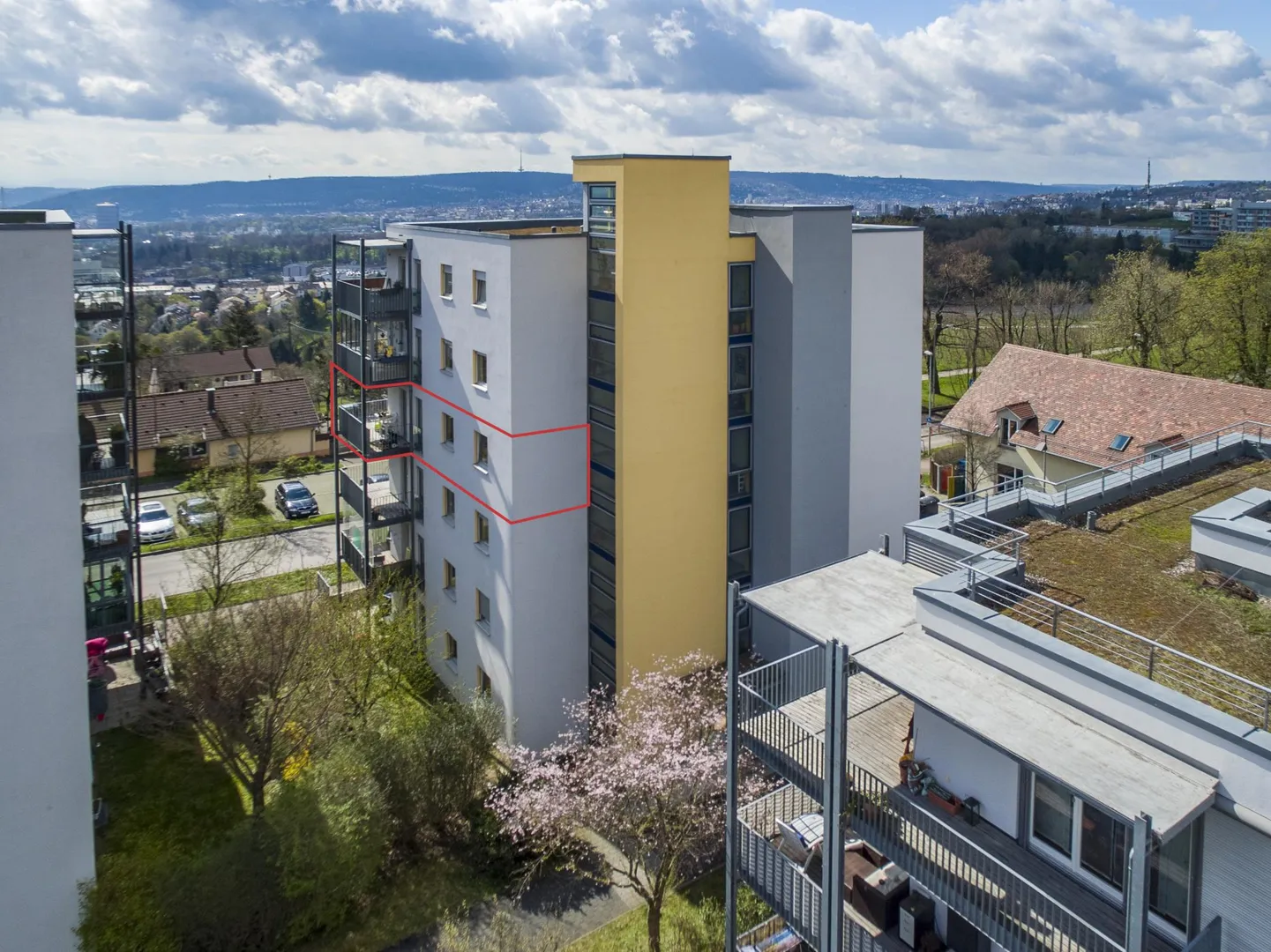 Diese neuwertige 3-Zimmer-Wohnung mit Panoramaaussicht befindet sich im 3. Obergeschoss.