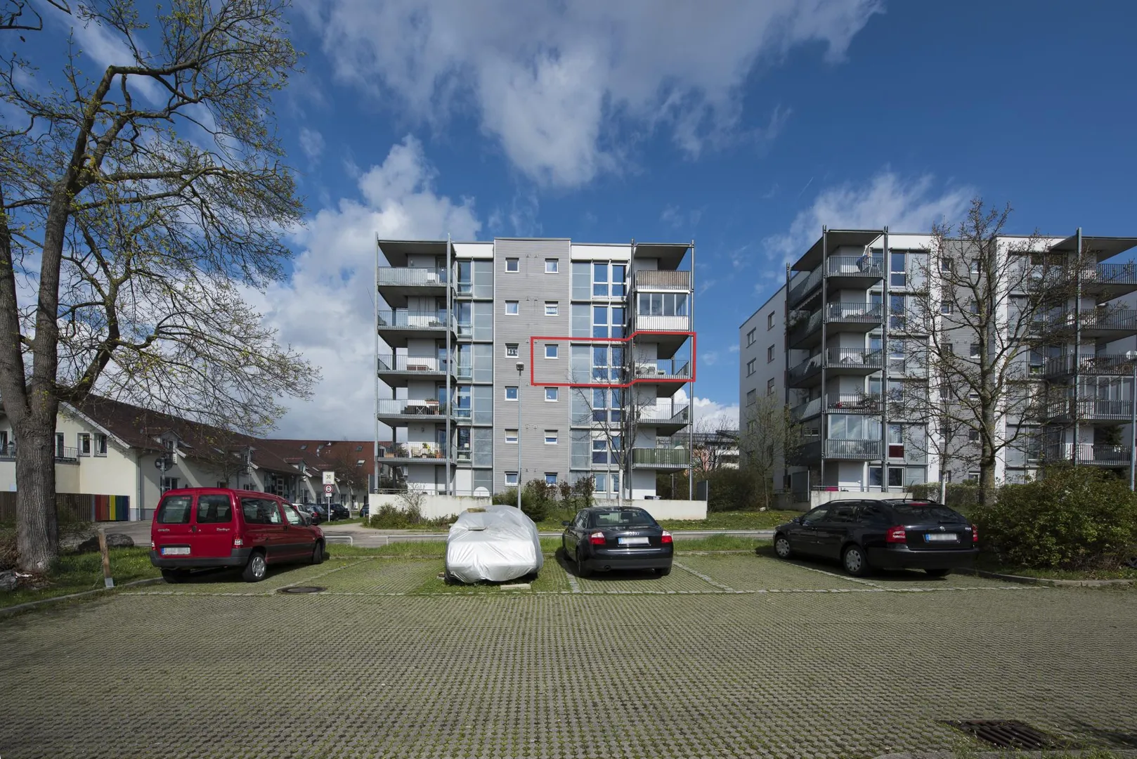 Zur Wohnung gehören ein Abstellraum im Untergeschoss sowie ein Kfz-Stellplatz im Doppelparker oben.