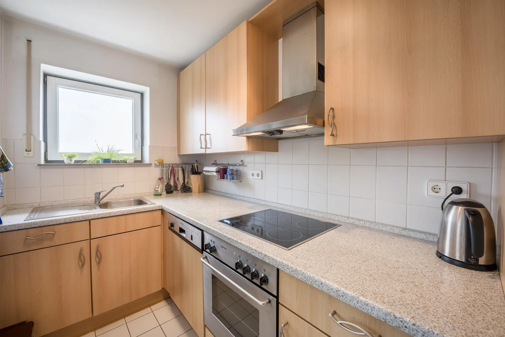 Die Küche ist mit einer Einbauküche mit allen Elektro-Geräten ausgestattet. Die E-Geräte sind funktionsfähig. Für die künftige Funktionsfähigkeit der E-Geräte übernimmt der Vermieter keine Haftung.