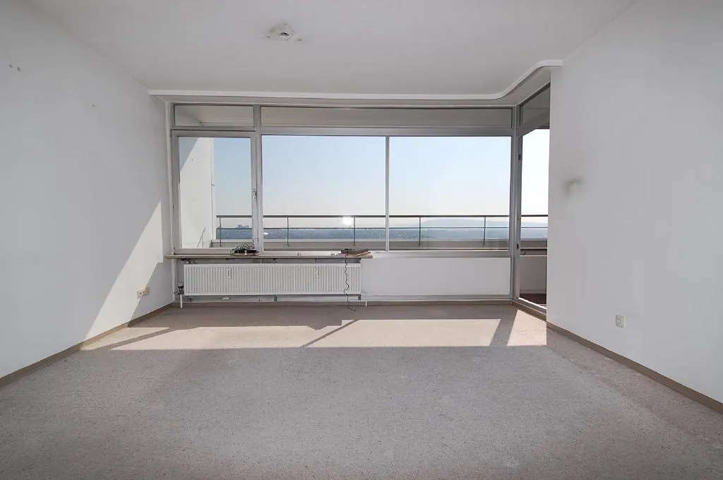 Das "Apollo"-Hochhaus wurde ca. 1972, massiv mit Flachdächern erbaut. Es ist 2-fach unterkellert und verfügt im Untergeschoss über eine Tiefgarage, Abstellräume und einen Wellnessbereich.