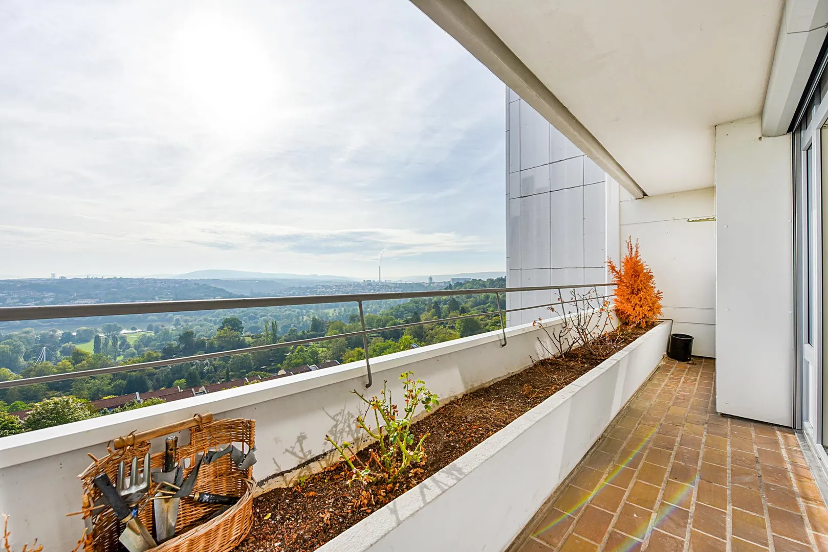 Hier wohnen Sie bequem in Süd/Ost-Ausrichtung mit traumhafter Panoramafernsicht über den Max-Eyth-See und Neckar bis zum Kappelberg sowie in Nord/West-Ausrichtung Richtung Einkaufszentrum Freiberg.