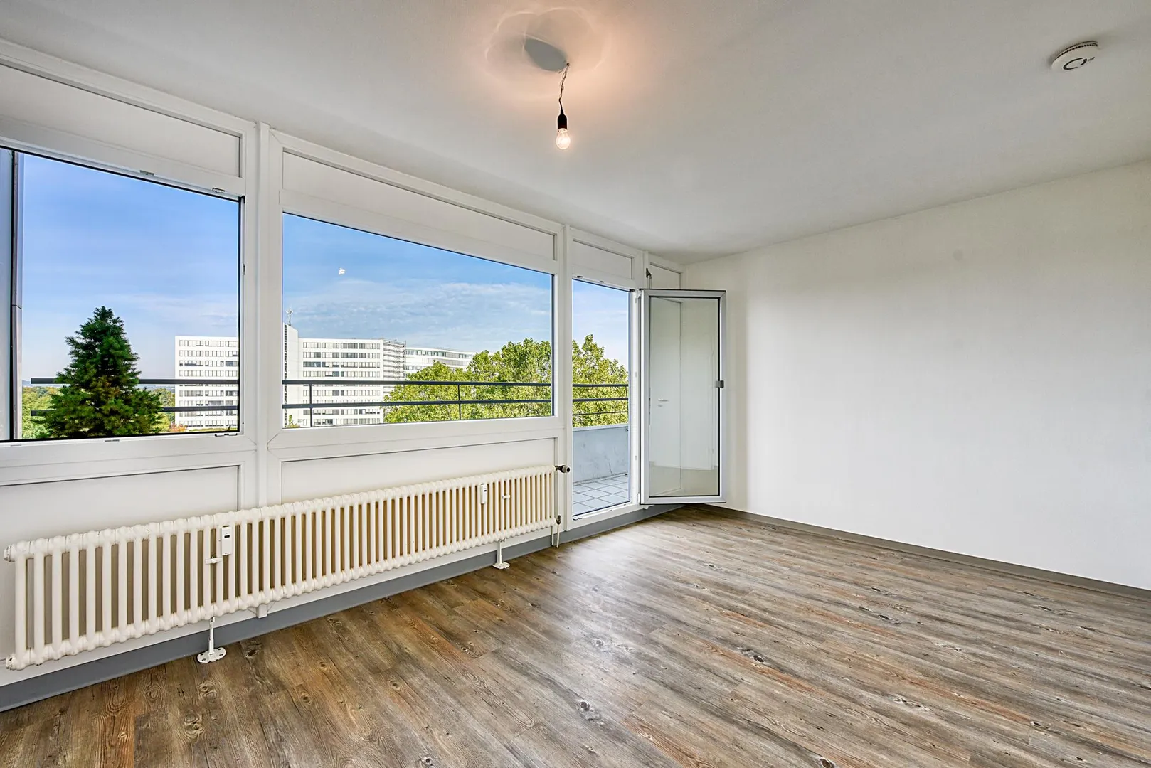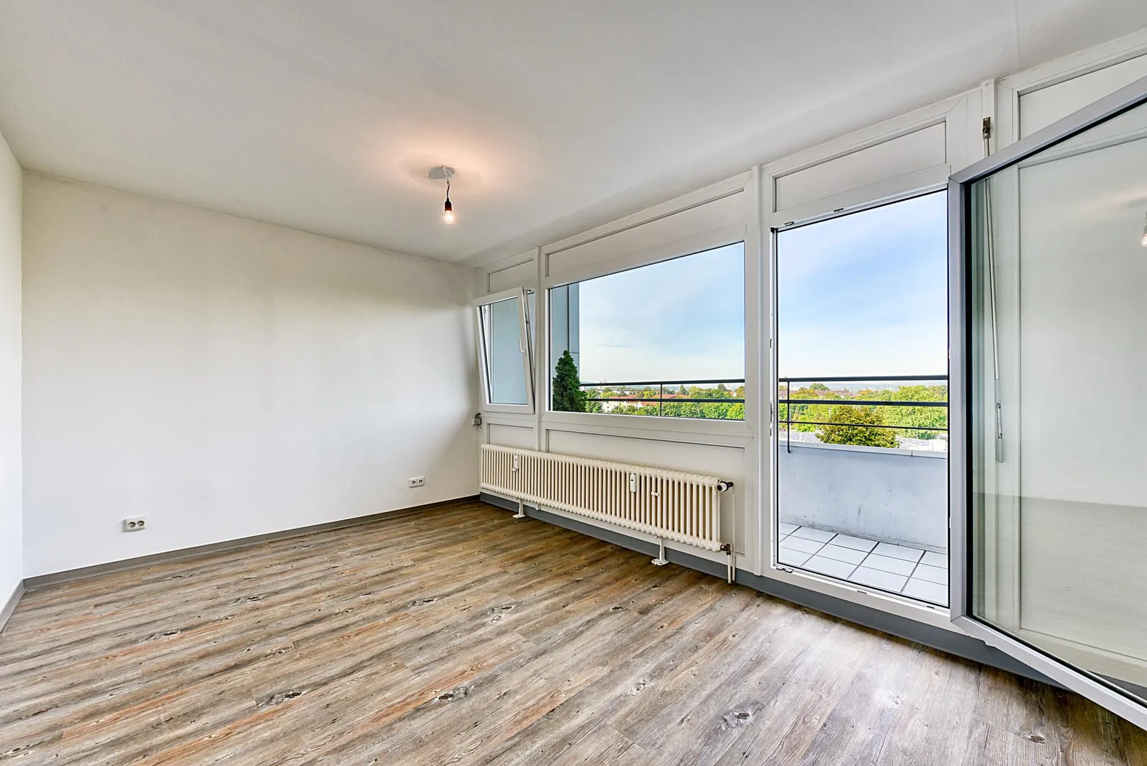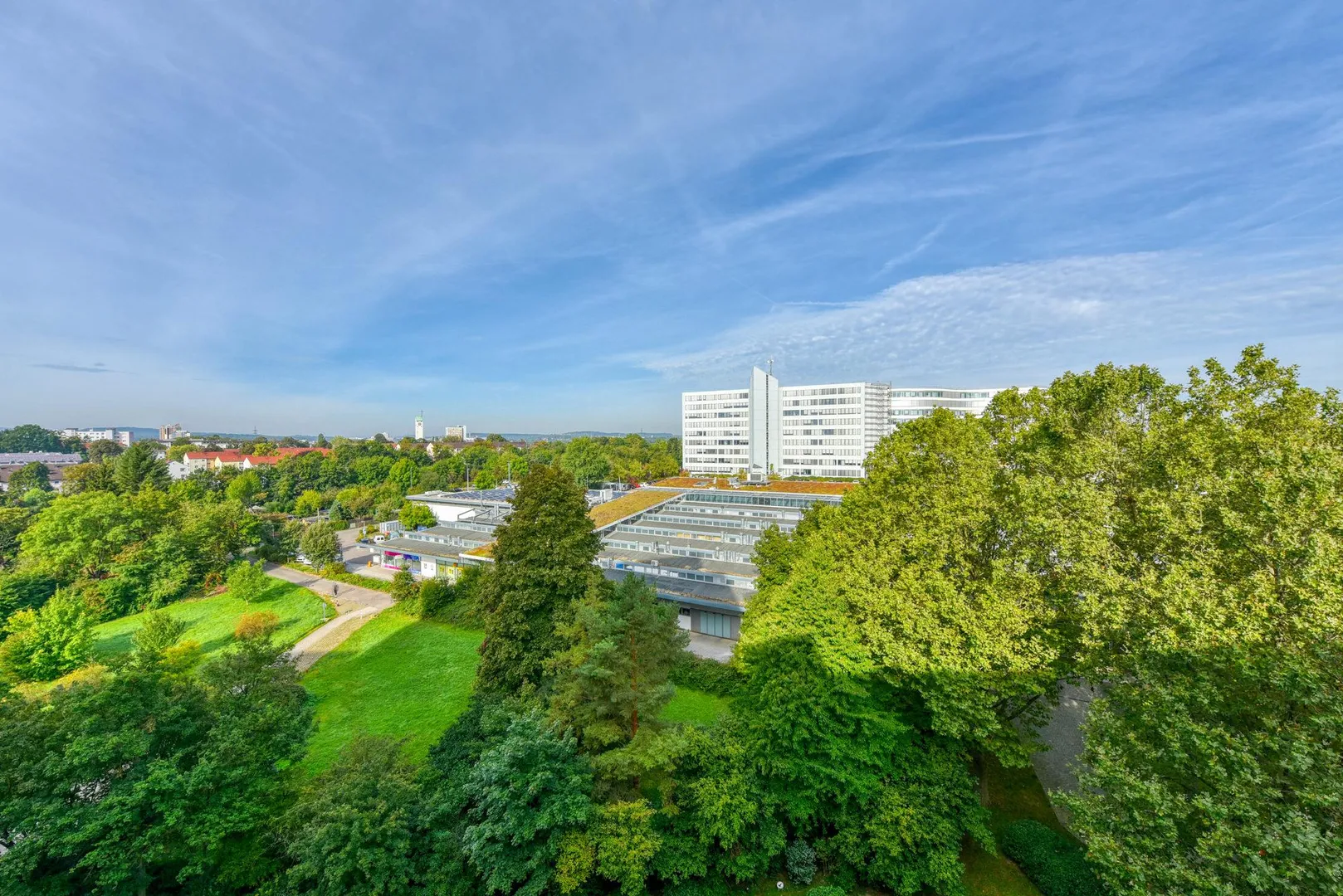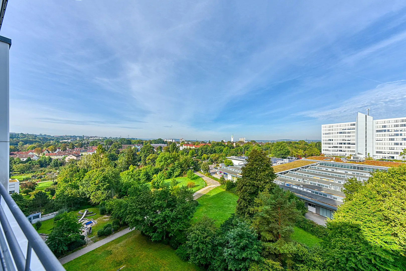 Diese frisch modernisierte 2-Zimmer-Wohnung, an eine Einzelperson, mit Panorama-Fernsicht mit Blick zum Max-Eyth-See befindet sich im 8. Obergeschoss.