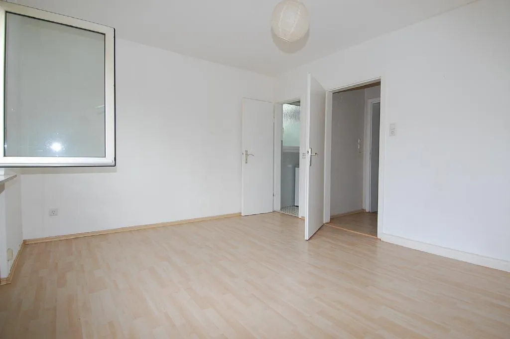 Das Zimmer und der Flur sind mit einem Laminatboden ausgestattet, welcher 2010 verlegt wurde. Das Zimmer ist tapeziert und wird frisch gestrichen übergeben. In der Küche liegt ein PVC-Boden.