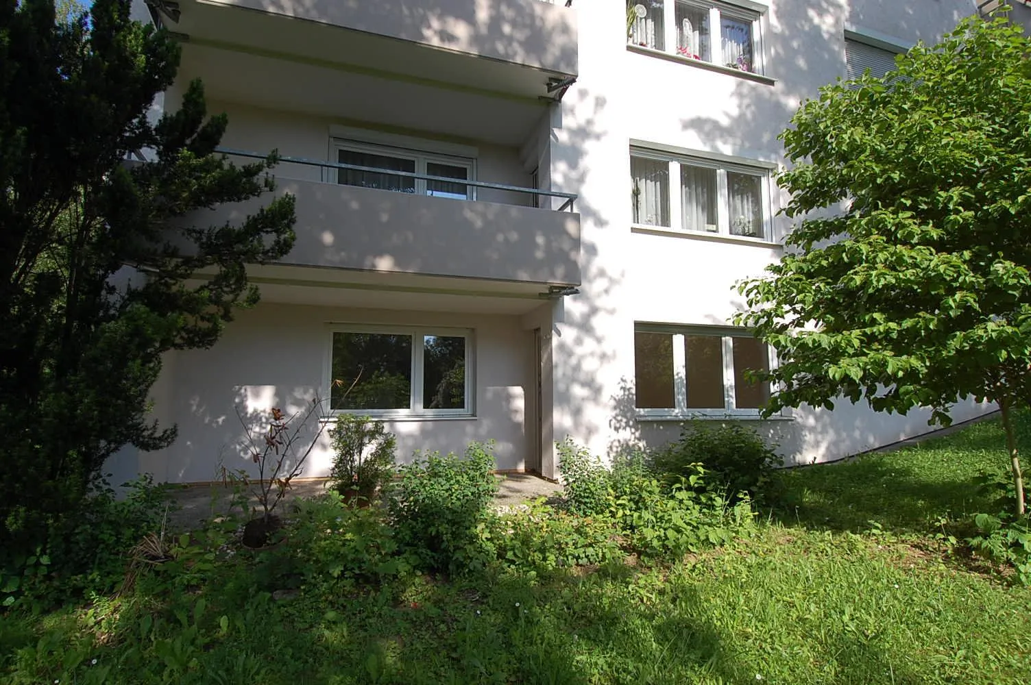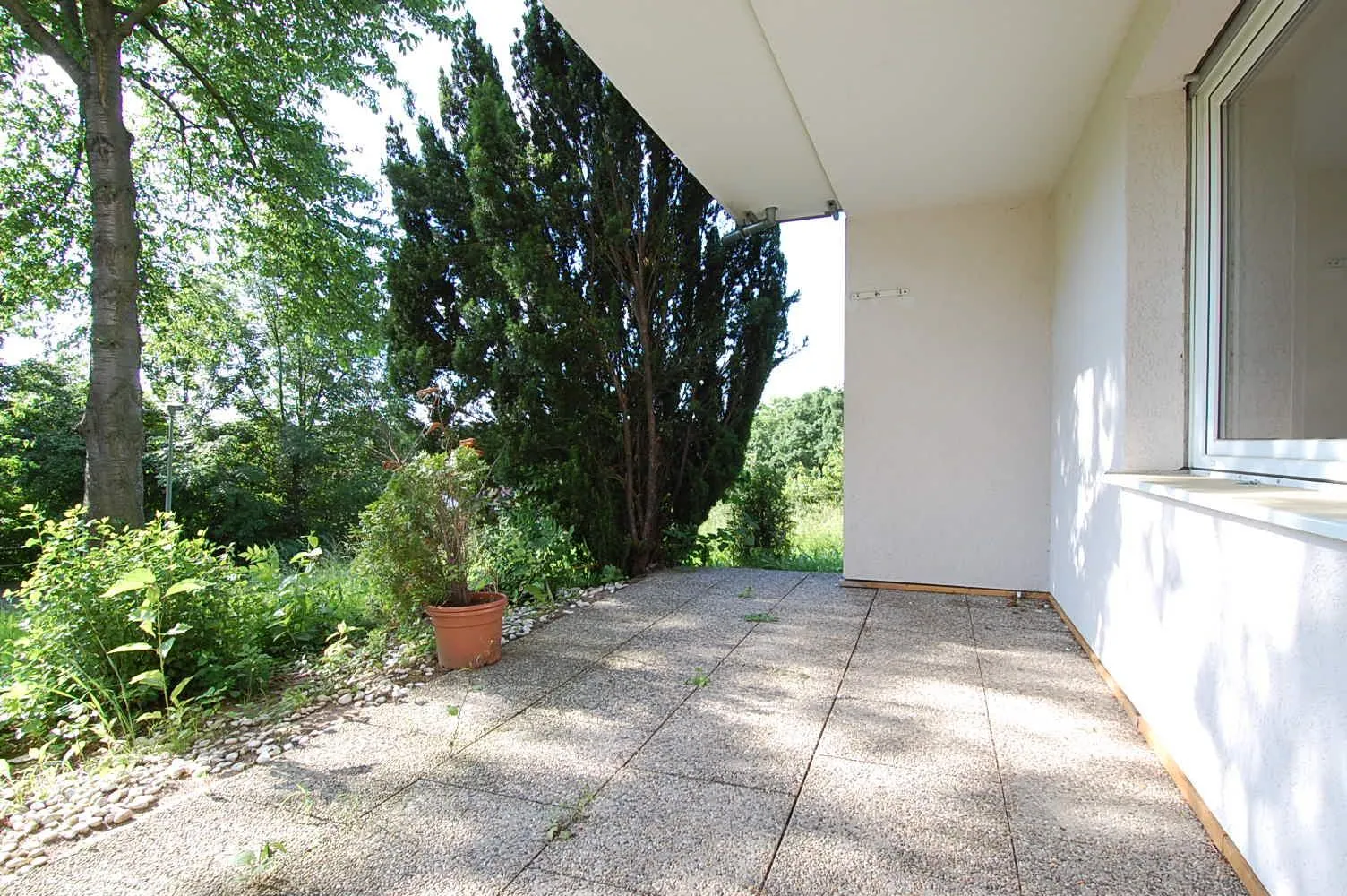 Diese schöne 4-Zimmer-Terrassen-Wohnung befindet sich im Terrassen-Unter-Geschoss eines 7-Familien-Reiheneckhauses.