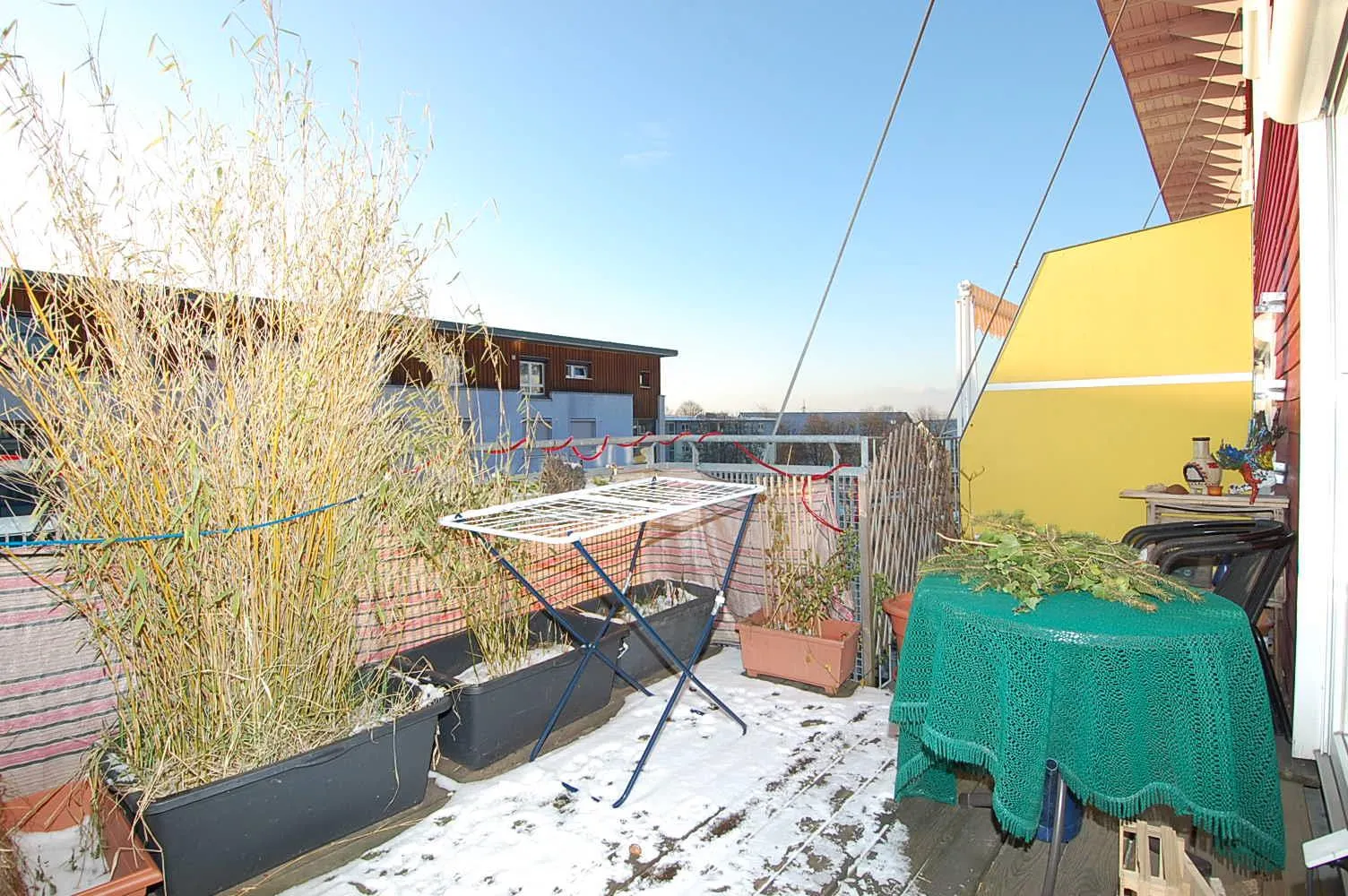 Diese helle 4 Zimmer-Dachgeschoss-Maisonette-Wohnung befindet sich im 2. und 3.Obergeschoss und verfügt über einen Balkon und einen Gartenanteil vor dem Haus.