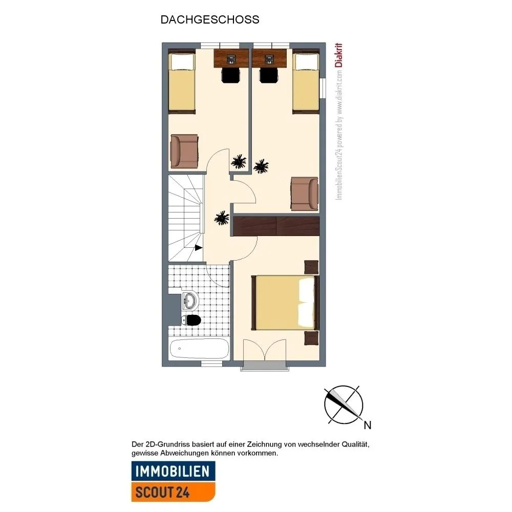 Im DG befinden sich 3 Zimmer und das Badezimmer mit Fenster.
