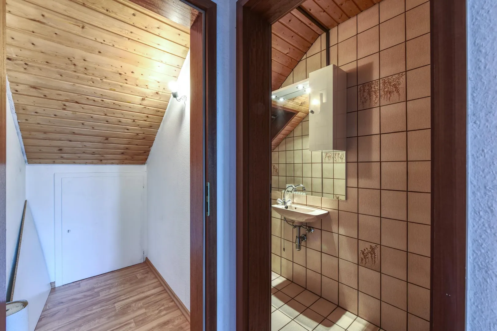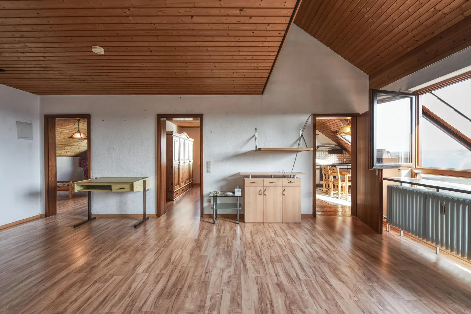 Diese individuelle und modernisierungsbedürftige 4 1/2-Zimmer-Dachgeschoss-Maisonette-Galerie-Wohnung mit ca. 10 m² uneinsehbarer Süd-Dach-Terrasse mit Fernblick befindet sich im 2. Obergeschoss.
