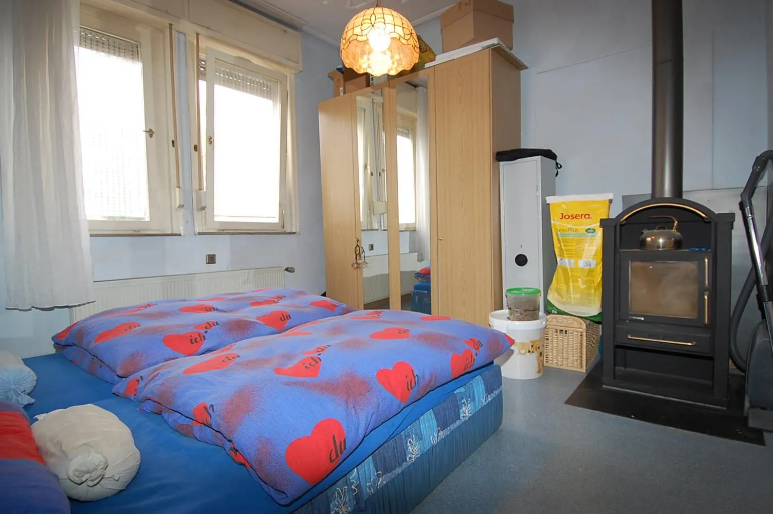 Die Wohnung wird mit einer Gas-Etagenheizung beheitzt. Im Schlafzimmer steht zusätzlich ein Holz-kaminofen zur Verfügung.