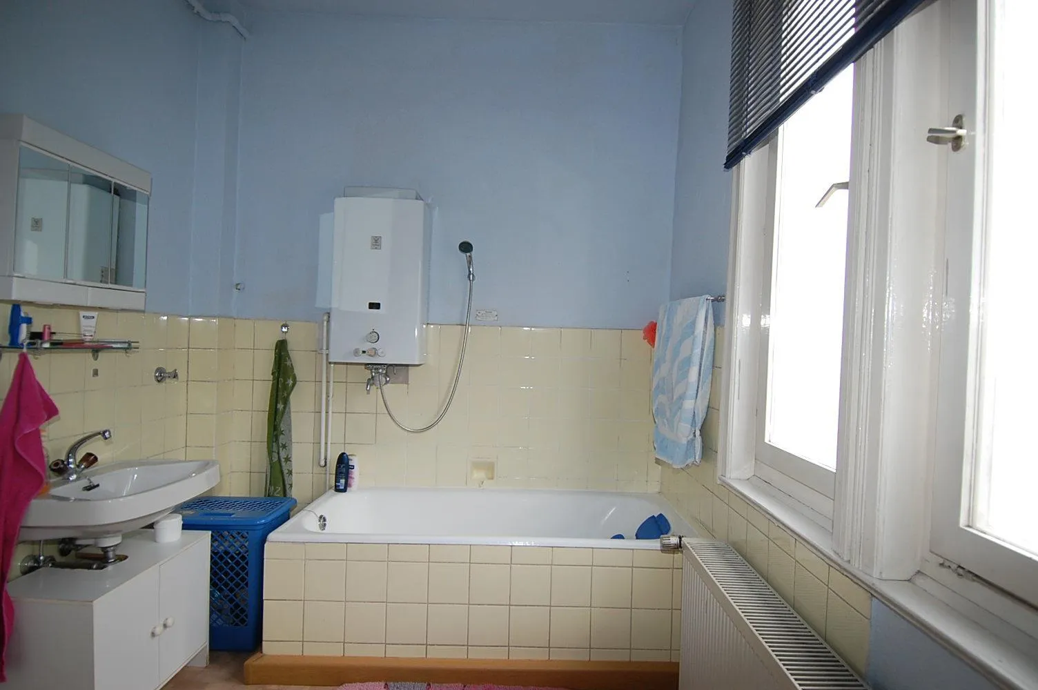 Das Badezimmer ist zwar über die Küche zugängig, ist aber relativ groß, mit einem Fenster und einer Badewanne ausgestattet. Das WC verfügt über ein Fenster und ist separat.