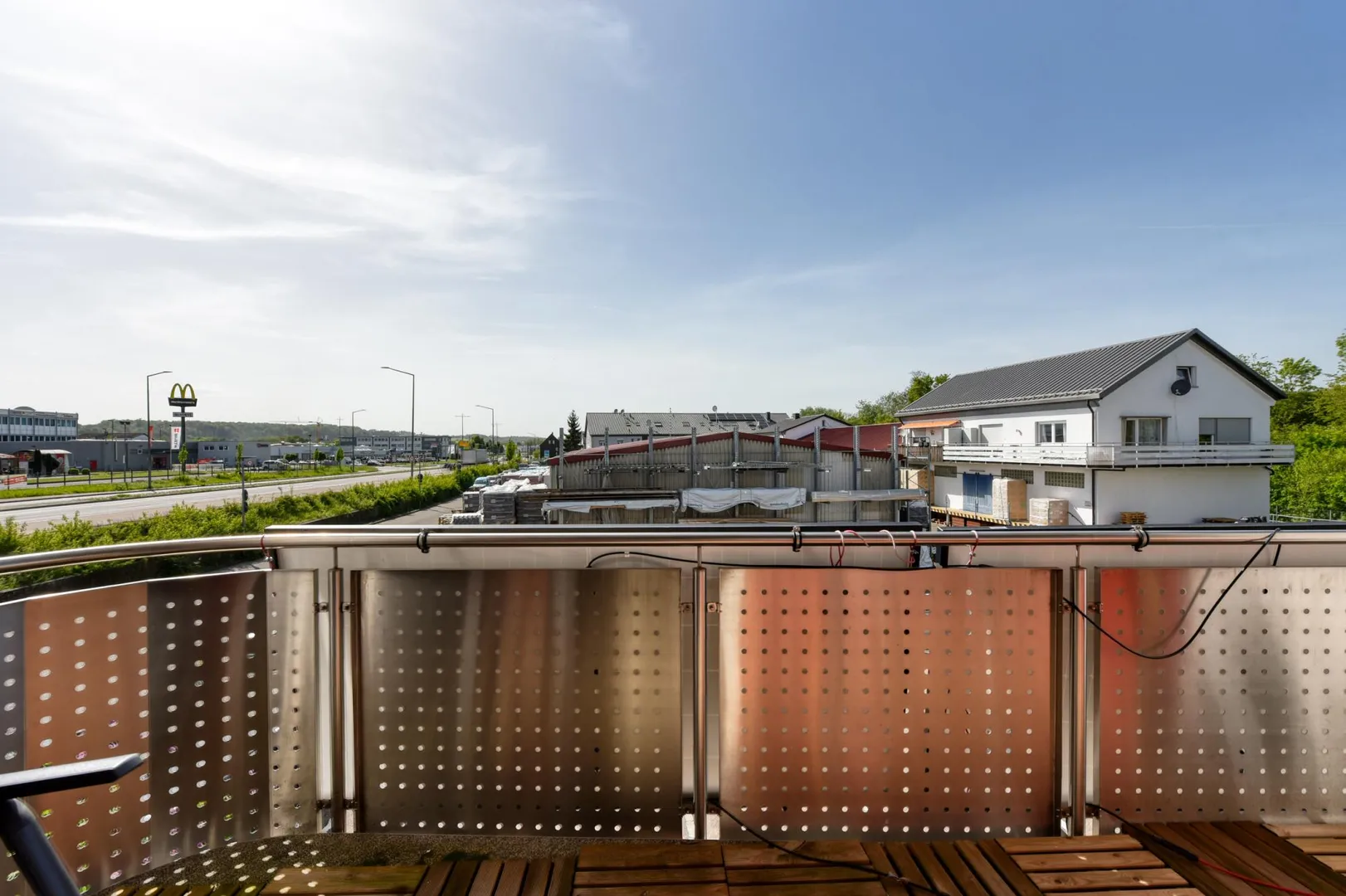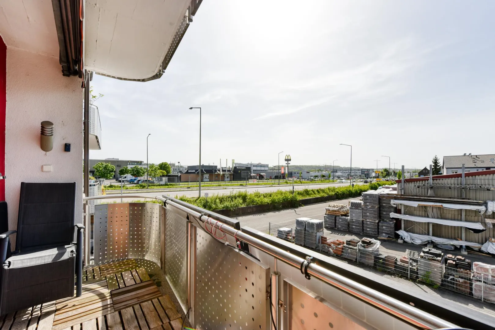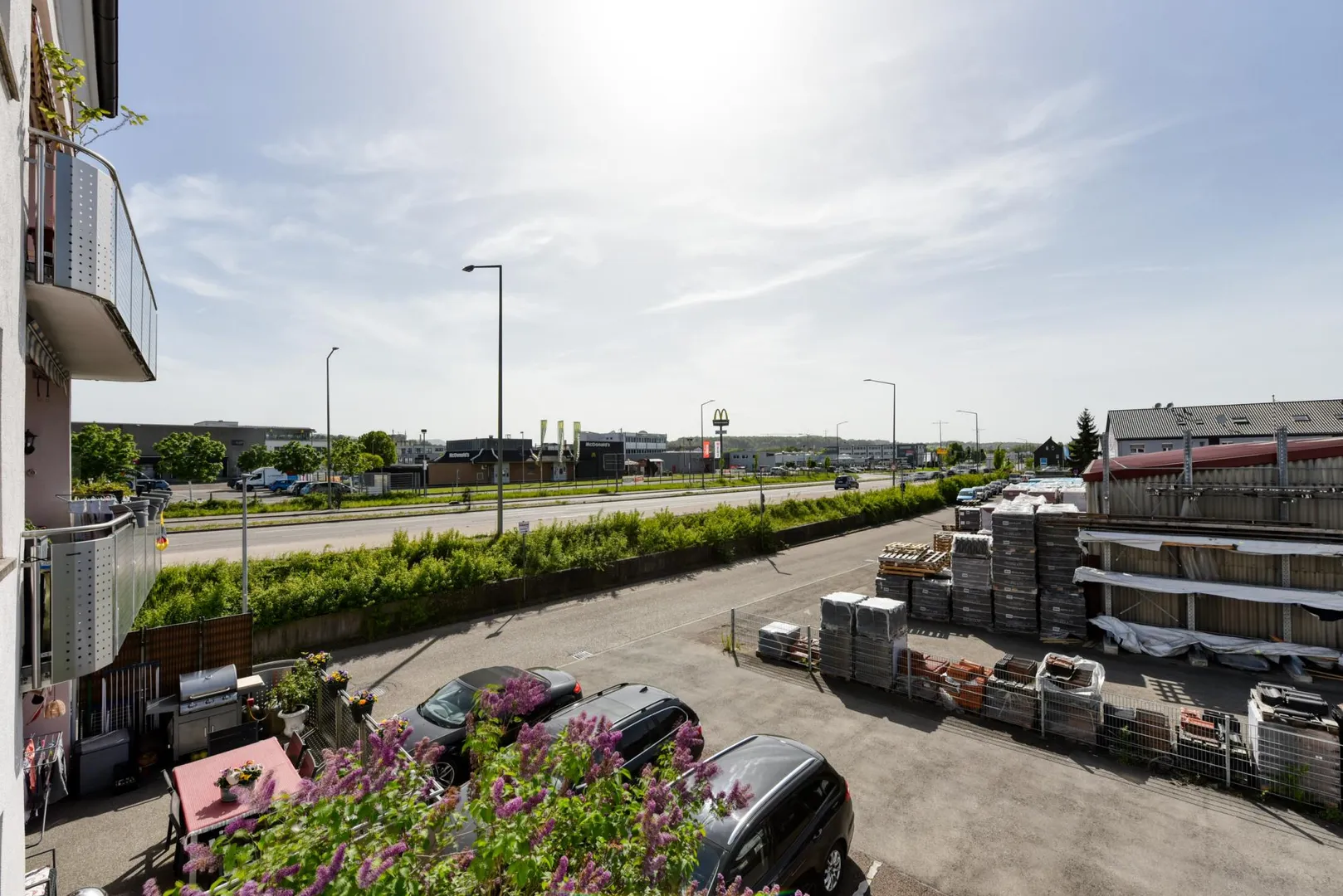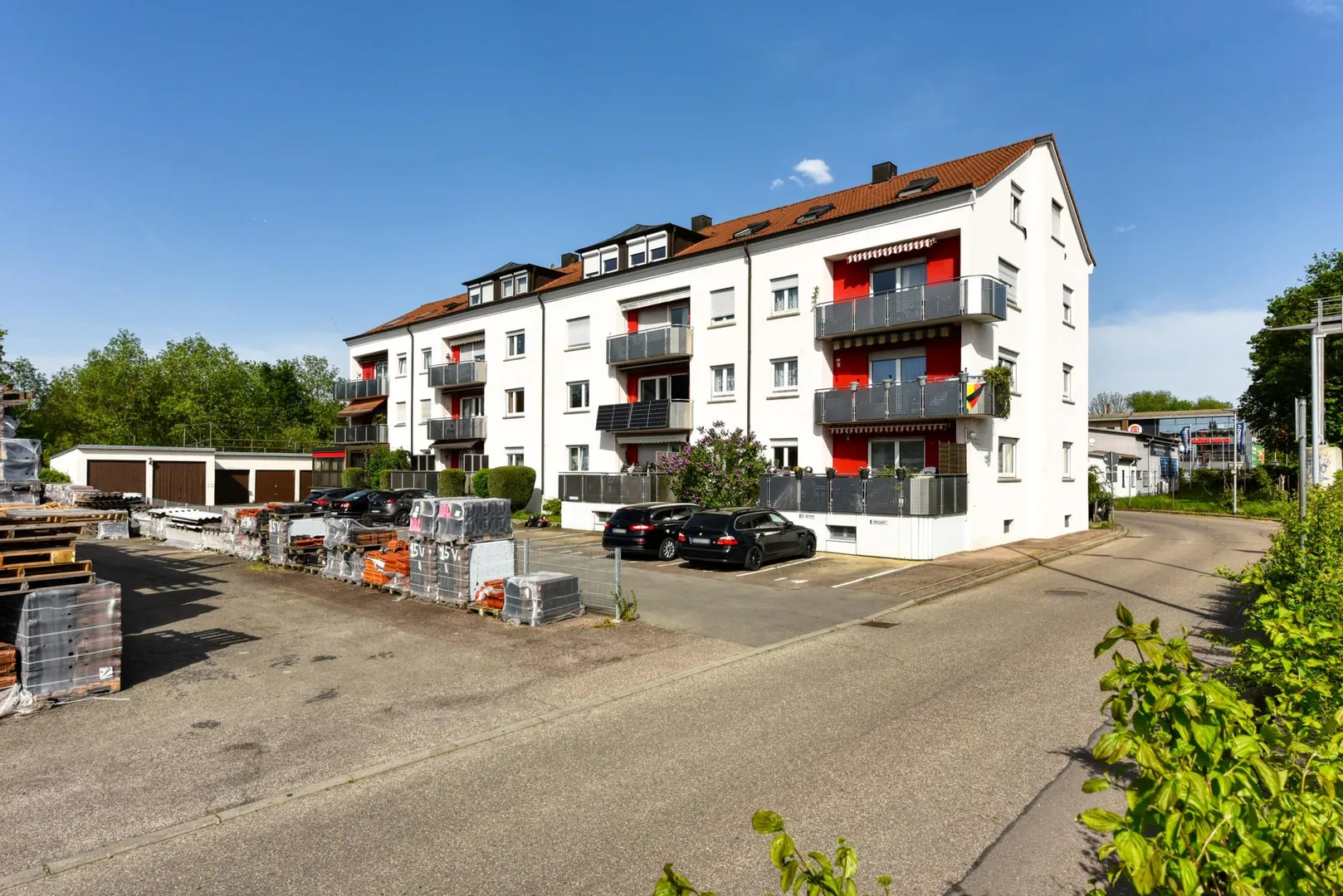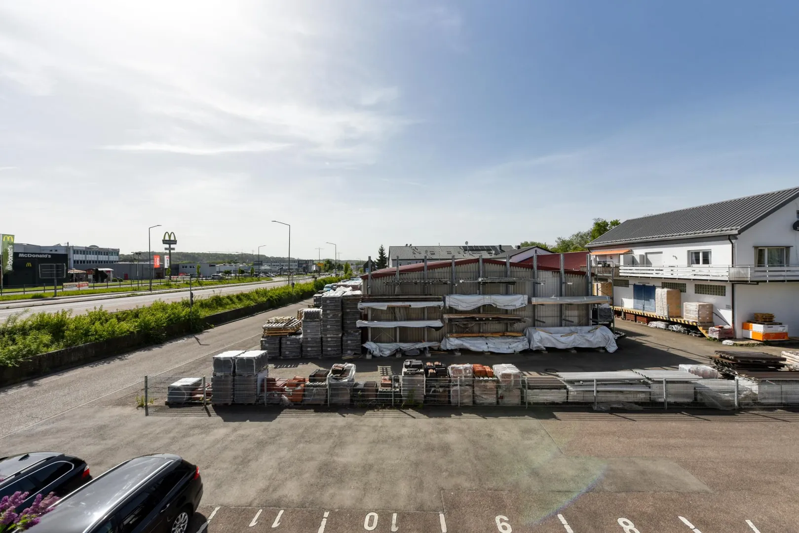Die Wohnung befindet sich im Gewerbegebiet zwischen der Fils und der Stuttgarter Straße. Direkt gegenüber befindet sich ein Baustoffhandel.