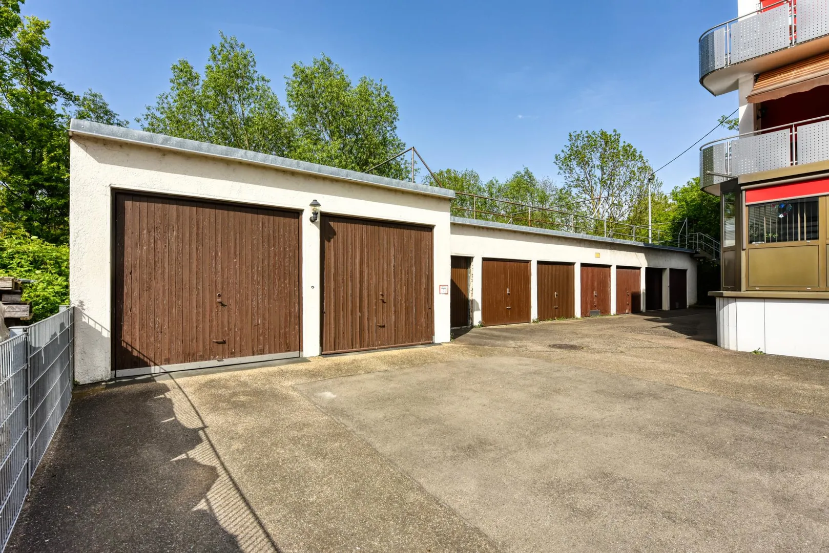 Zur Wohnung gehören ein ca. 13 m² großer Abstellraum im Untergeschoss sowie ein Sondernutzungsrecht an einer Garage. Zusätzlich ist ein Kfz-Stellplatz von der Gemeinschaft für 15 EUR monatlich angemietet.