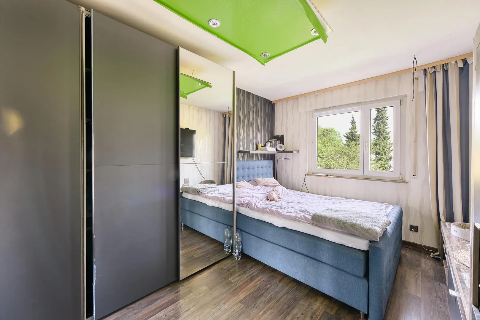 Die Wände sind überwiegend tapeziert. Die Decke im Wohnzimmer ist mit Paneelen verkleidet. Die Raumhöhen betragen ca. 2,48 Meter.