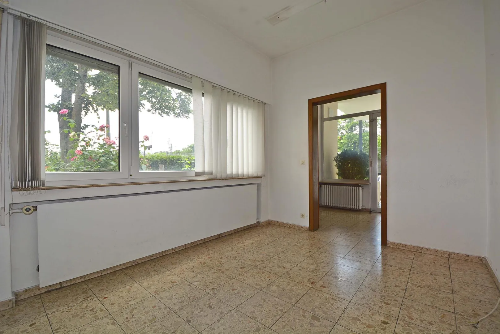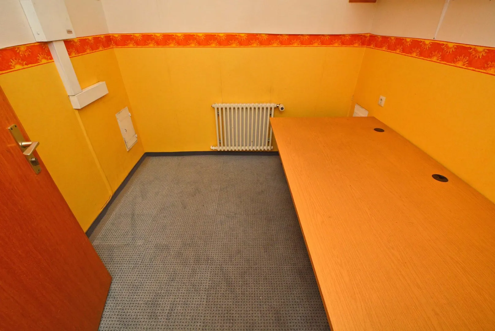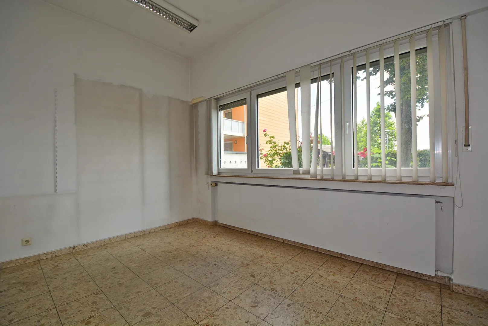 Diese renovierungsbedürftige Büro-Etage befindet sich im Hochparterre (Erdgeschoss) eines freistehenden Wohn- und Geschäftshauses.