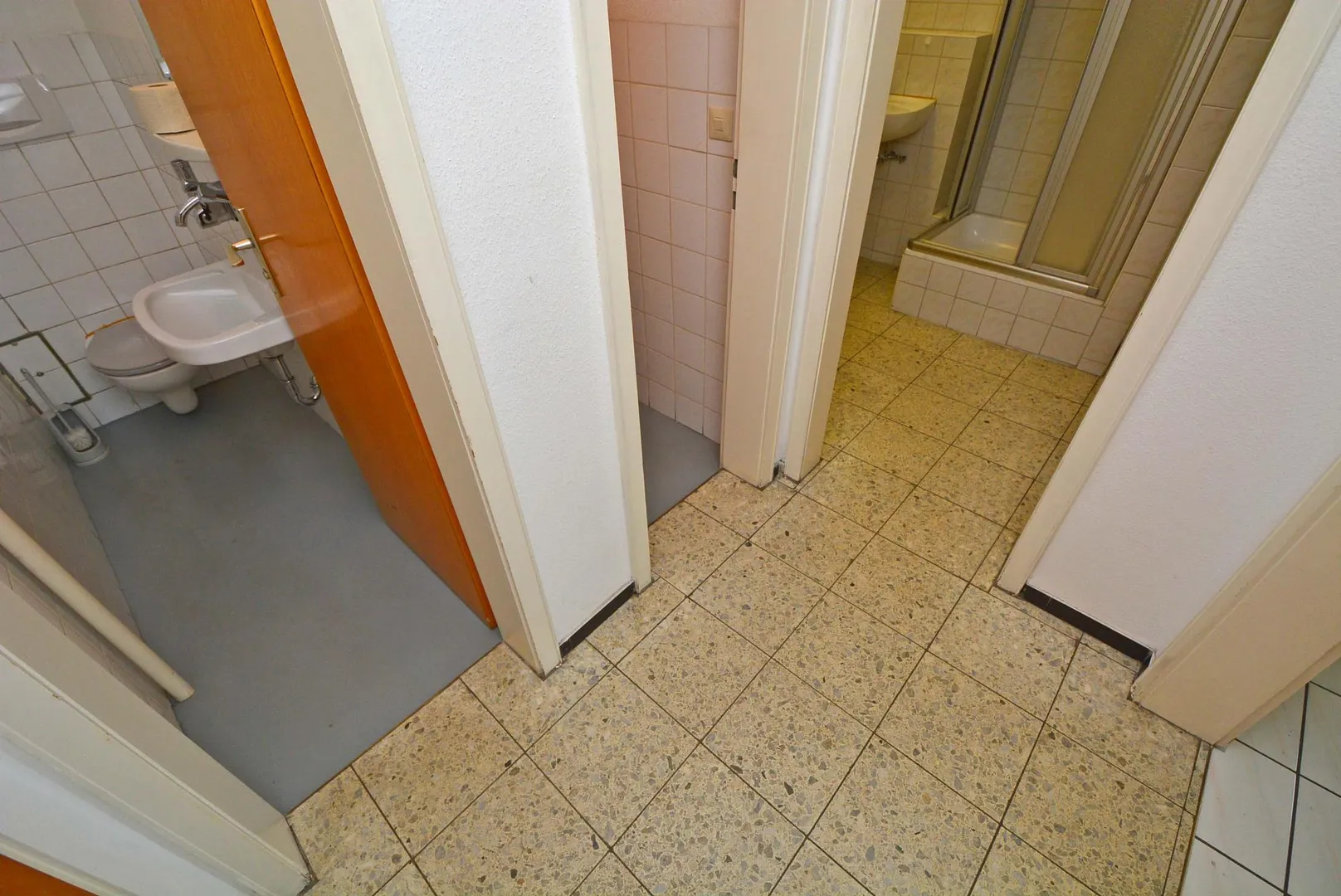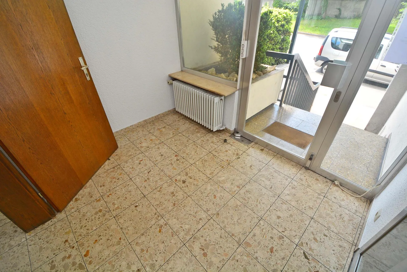Zur Gewerbeeinheit sind zwei Zugänge vorhanden. Der Haupteingang befindet sich auf der Straßenseite. Der zweite Zugang erfolgt über das Treppenhaus hinter dem Haus.