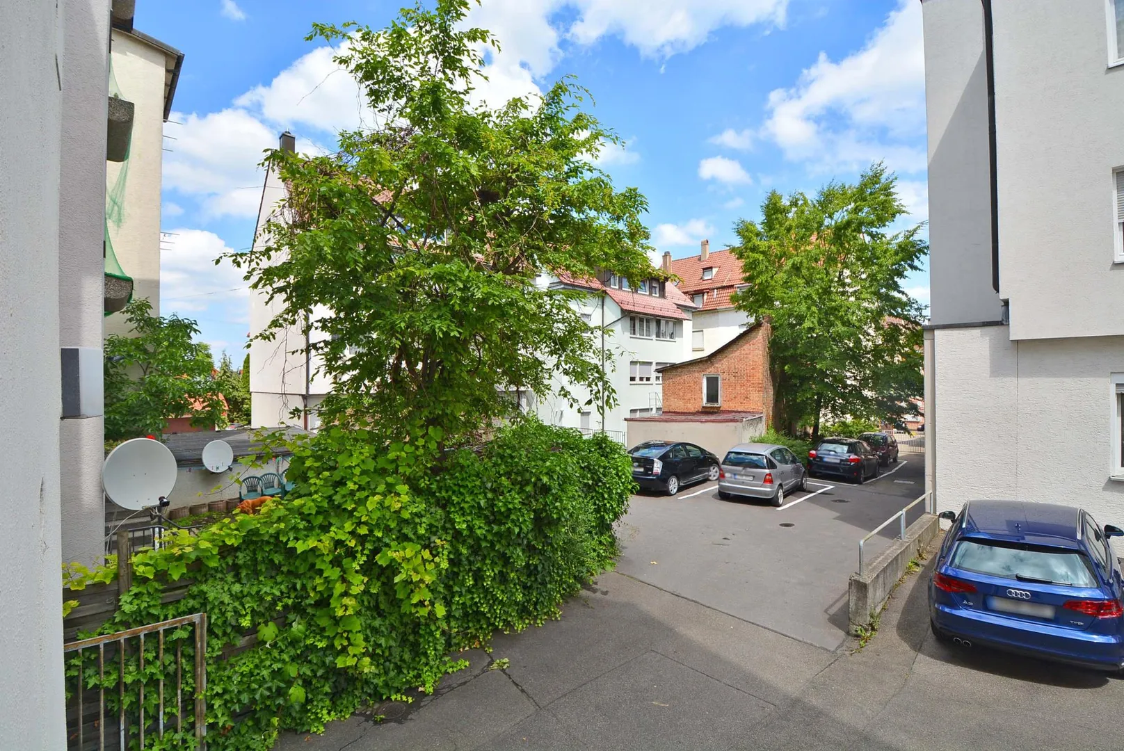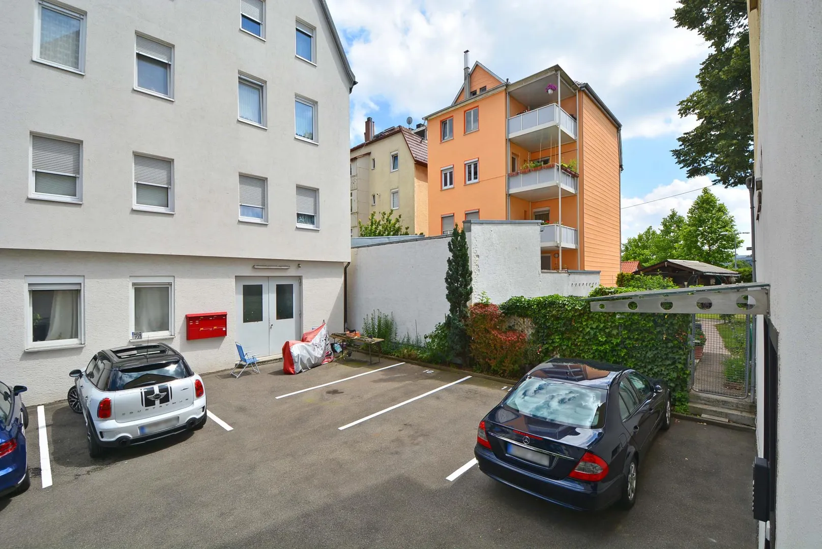 Zur Büro-Etage gehören ein Abstellraum auf der Etage, ein Abstellraum im Untergeschoss sowie ein Kfz-Außenstellplatz im Hof.