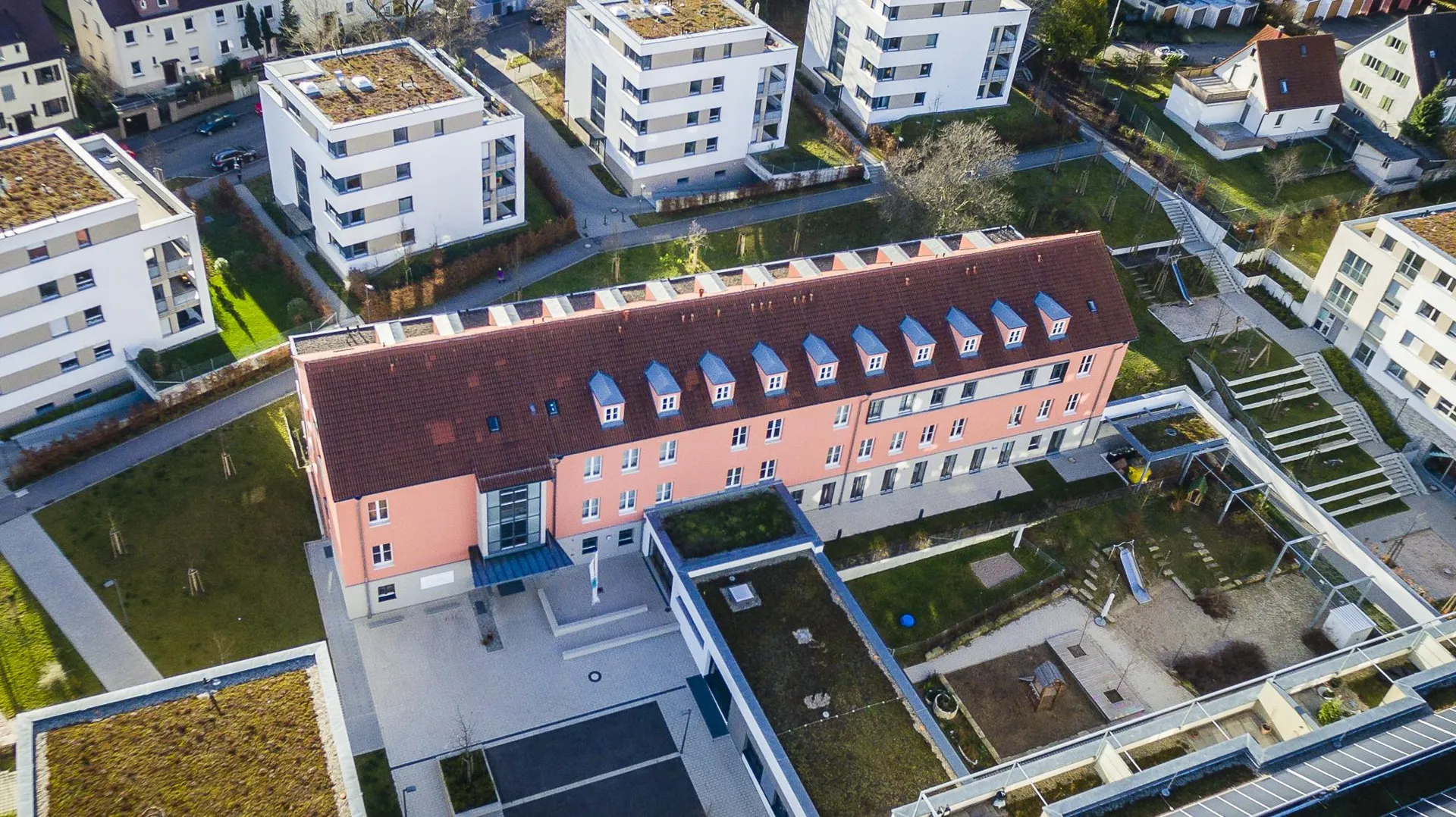 Diese voll möblierte, neuwertige und bequeme 2-Zimmer-Wohnung befindet sich im 1. Obergeschoss eines freistehenden Mehrgenerationenhauses mit 29 Wohneinheiten.
