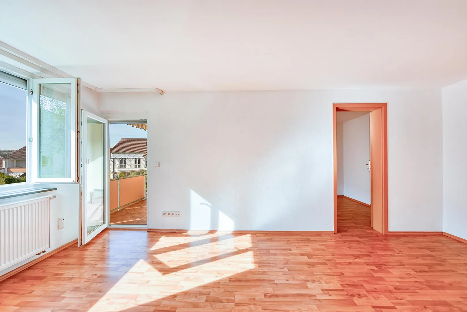 Der Balkon, das Wohnzimmer sowie das Schlafzimmer sind nach Westen ausgerichtet. Das Badezimmer sowie die Küche sind nach Osten ausgerichtet.
