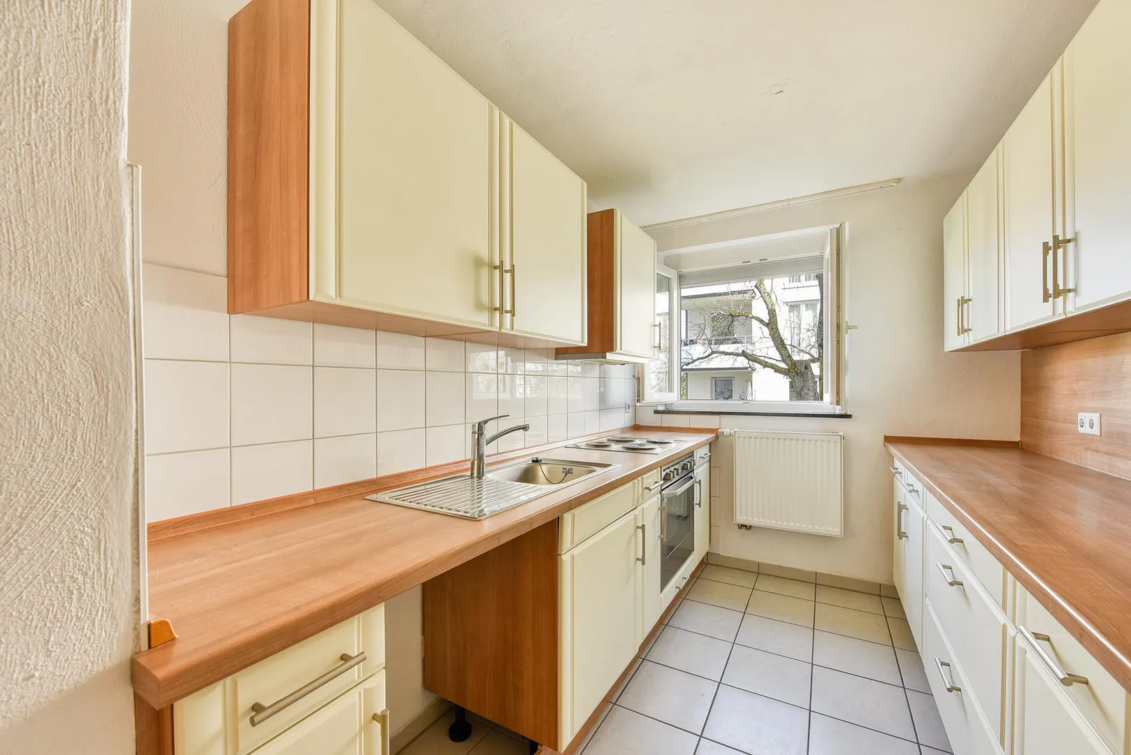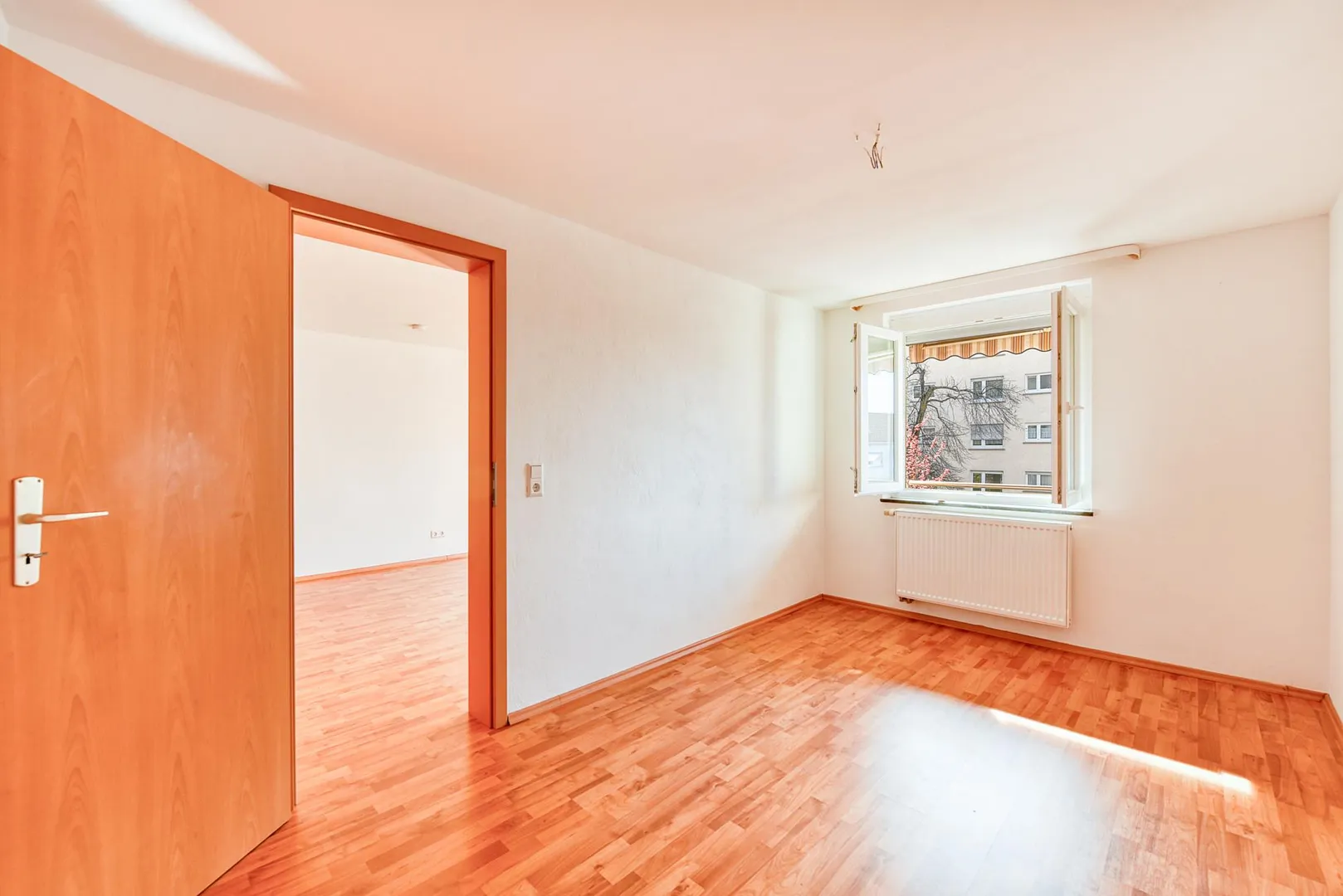 Die Böden in den Zimmern sind mit Laminat ausgestattet. Die Böden im Flur, im Badezimmer sowie in der Küche sind gefliest.