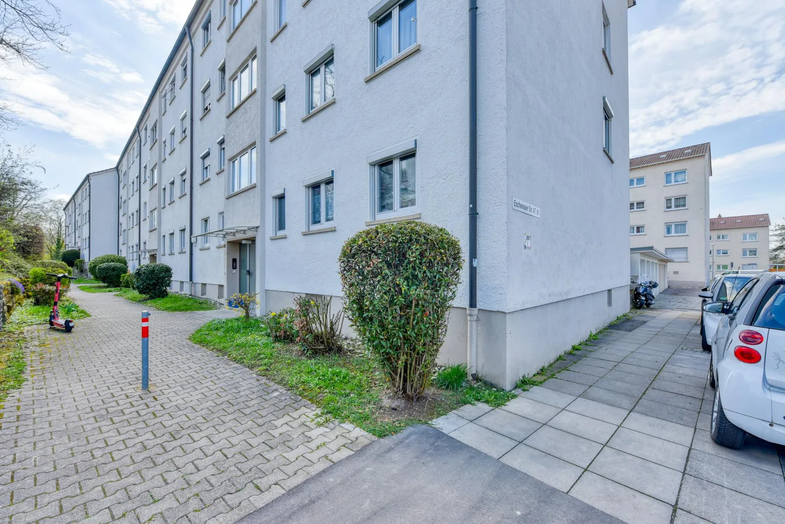 Zur Wohnung gehören ein ca. 3 m² großer Abstellraum im Untergeschoss sowie ein offener Abstellplatz auf der Bühne.