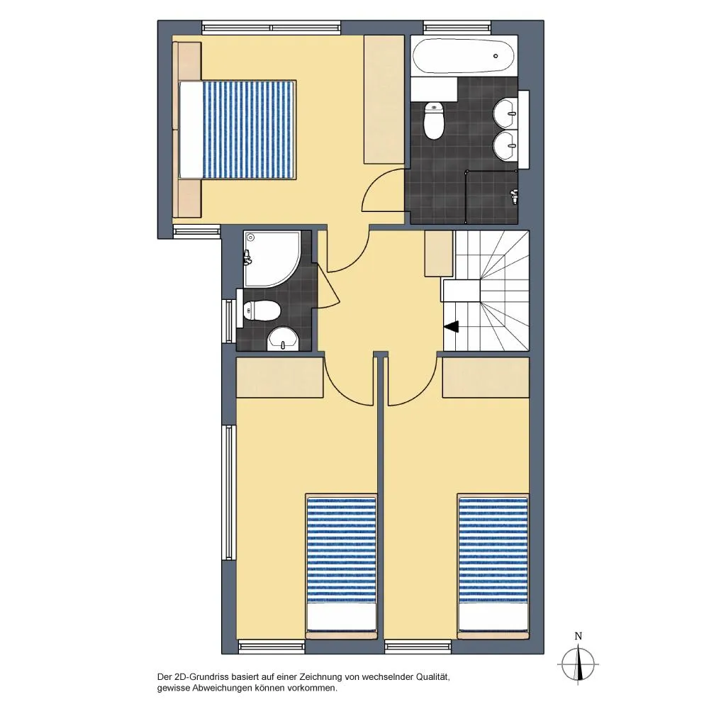 In der Diele sowie in den Zimmern ist ebenfalls dasselbe Parkett, wie im Terrassengeschoss, verlegt. Die Raumhöhe beträgt ca. 2,35 Meter.